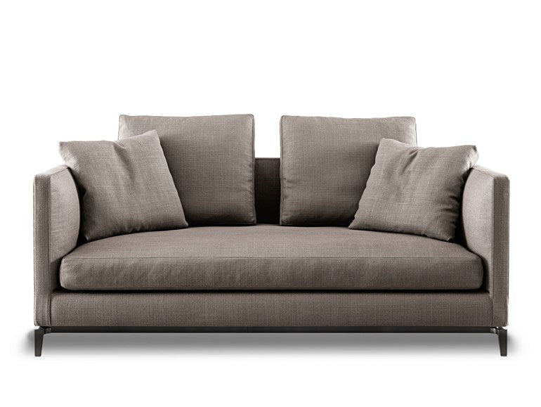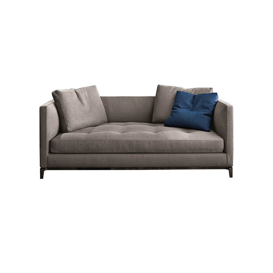 Construcción: Estructura en maderas estacionadas, cinchas y resortes, placa de supersoft de densidad variable a confort personal, almohadones en vellón siliconado envueltos en guata con funda y cierres. Base en hierro negro.