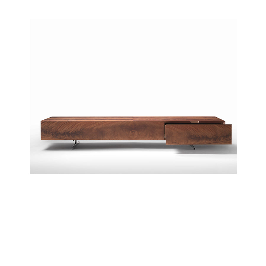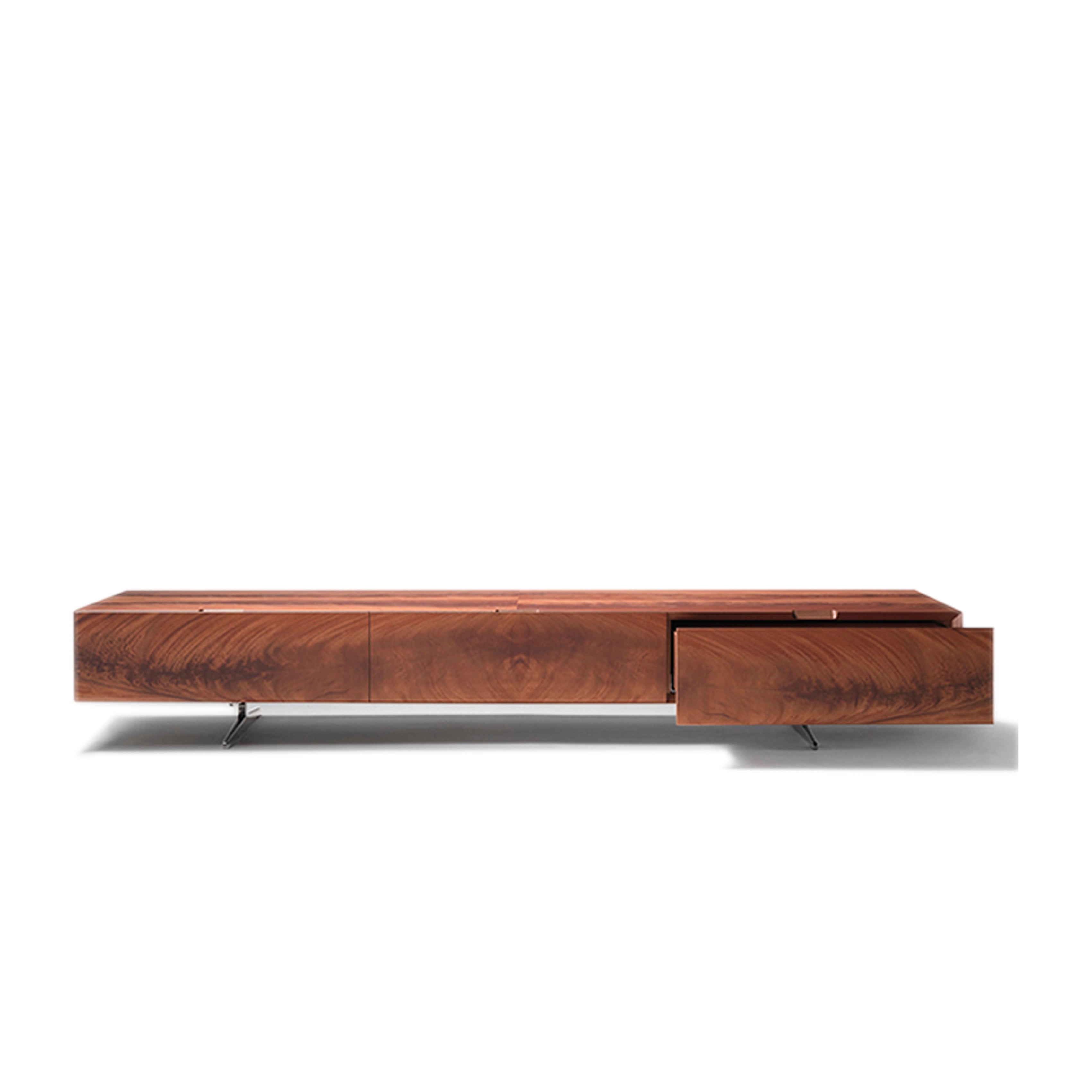 La mesa de led Allegra está construida con madera de incienso lustrada al poliuretano mate, lo que le proporciona un acabado elegante y duradero. Cuenta con dos cajones y una tapa volcable para equipos, lo que la convierte en una opción práctica para el uso diario. Las patas están hechas de hierro pintado epoxi en tono a elección, lo que le otorga una gran estabilidad y resistencia.