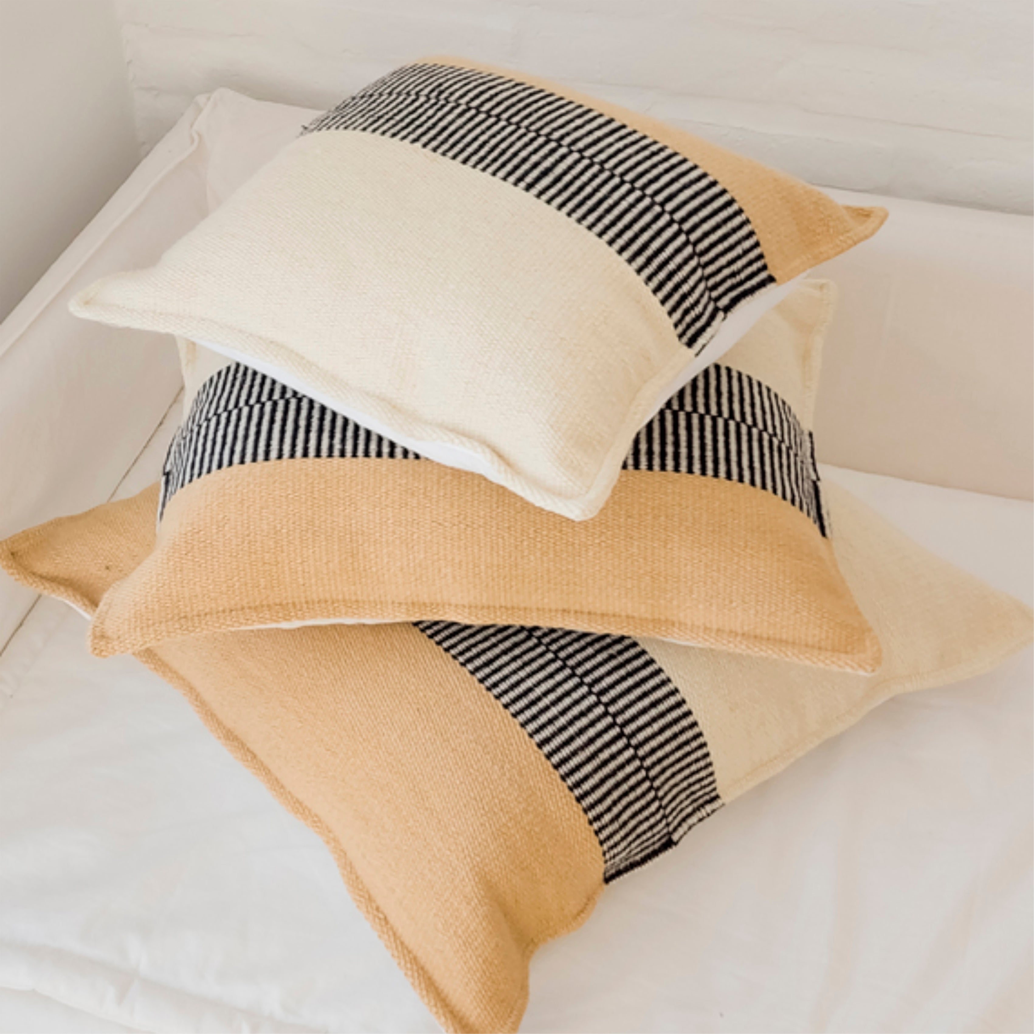 Almohadón tejido en lana natural, suave y acogedor. Su diseño artesanal resalta la calidez y textura de la fibra, ideal para dar un toque rústico y elegante a cualquier espacio. La contratapa está confeccionada en tela offwhite de alta calidad e incluye un cierre invisible para un acabado prolijo y práctico.