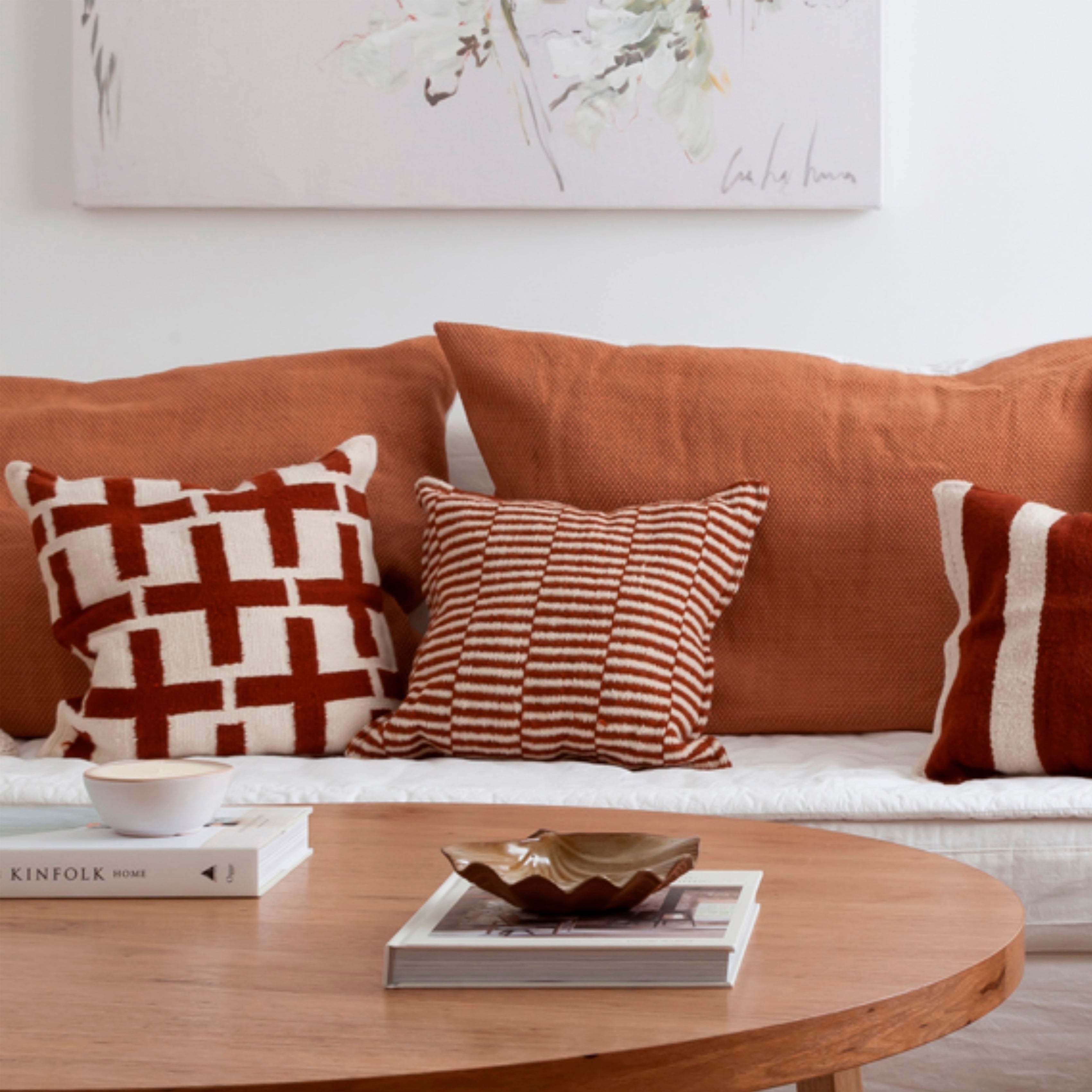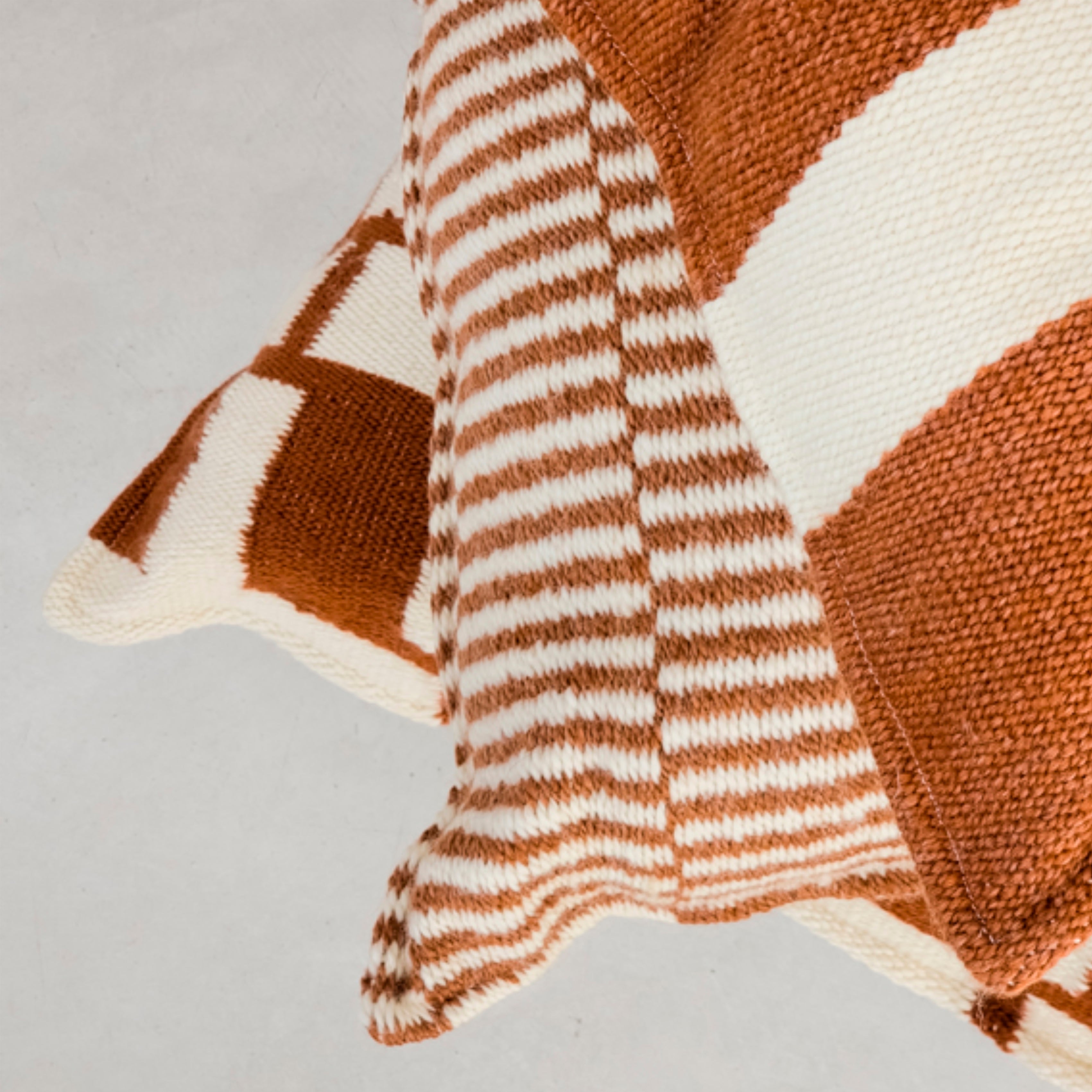 Almohadón tejido a mano en lana natural, con una textura cálida y envolvente que aporta estilo y confort a cualquier espacio. La contratapa, confeccionada en tela offwhite de alta calidad, cuenta con un cierre invisible para un acabado prolijo y sofisticado.