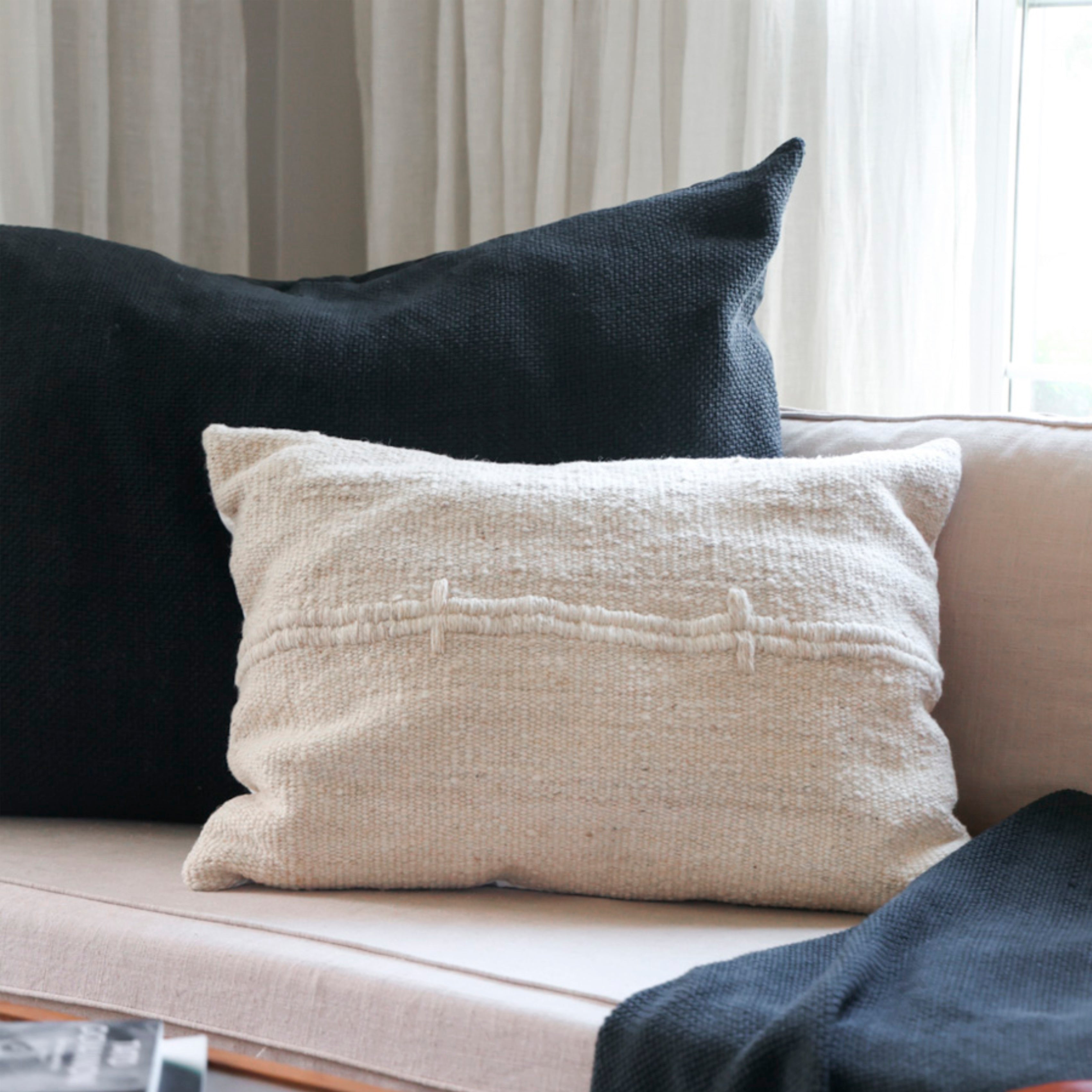 Estos almohadones están tejidos y bordados a mano, logrando una textura única y especial. Son perfectos para combinar con almohadones lisos y darle un toque distintivo a cualquier espacio.