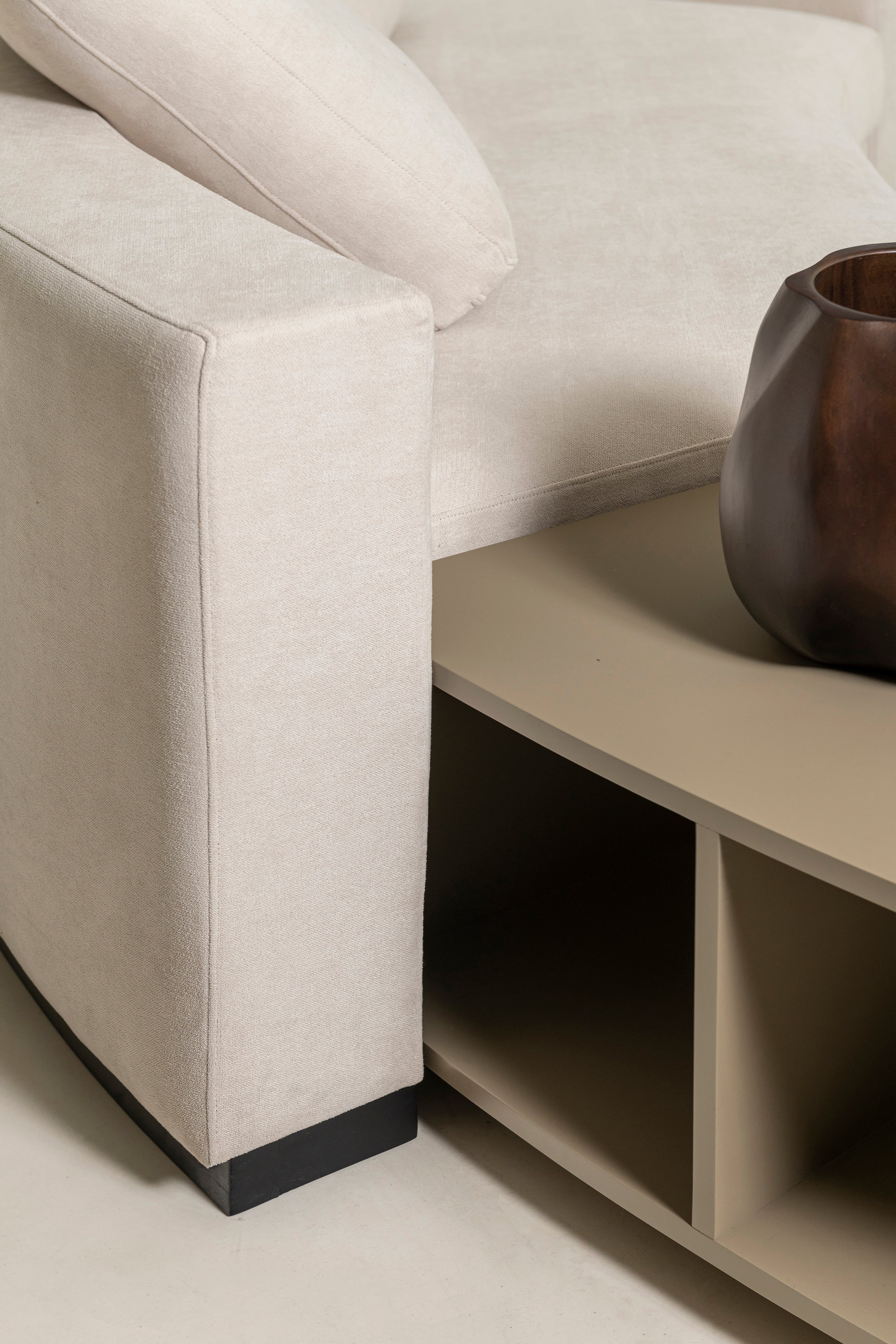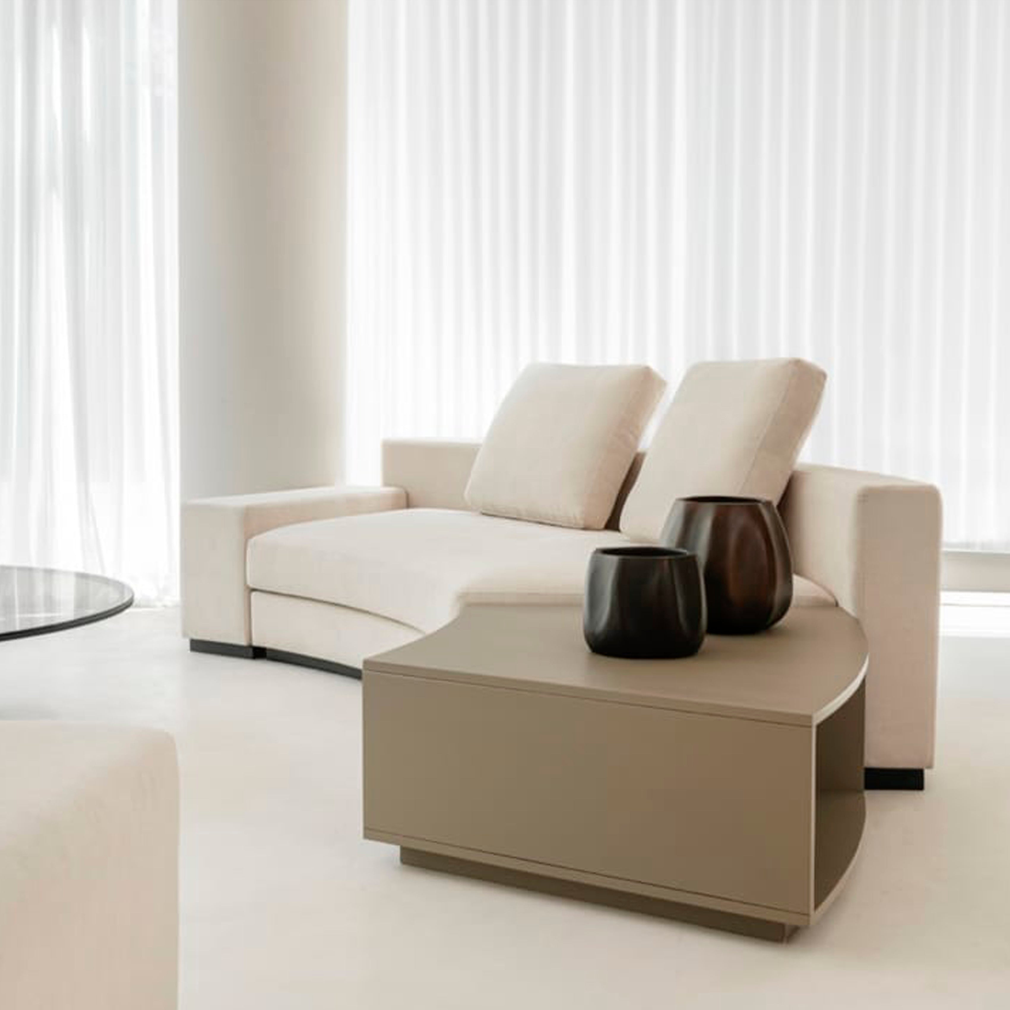 Diseño contemporáneo y sofisticado, la mesa lateral Amber se destaca por sus formas orgánicas y su estética minimalista. Fabricada en madera laqueada, su silueta curva y líneas limpias aportan suavidad visual y un estilo elegante que se adapta tanto a espacios modernos como clásicos.