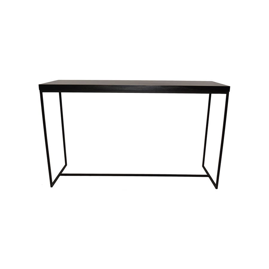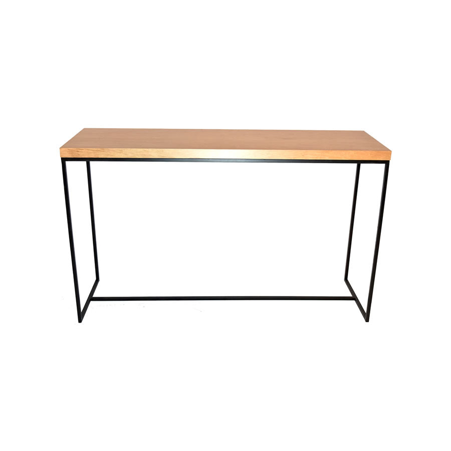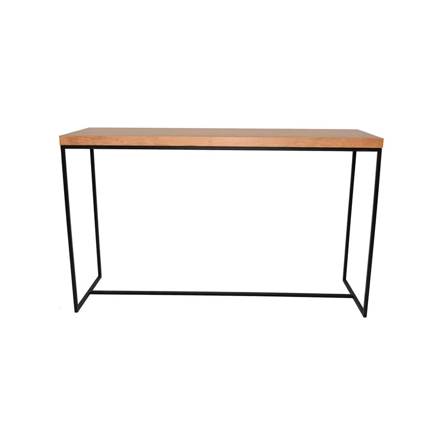 La consola Balen es una pieza de diseño elegante y minimalista, realizada en madera de guindo lustrada al poliuretano semi-brillo con una base de hierro negro epoxi en un tono a elección.