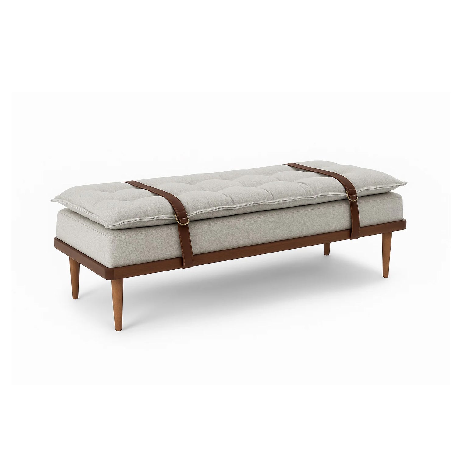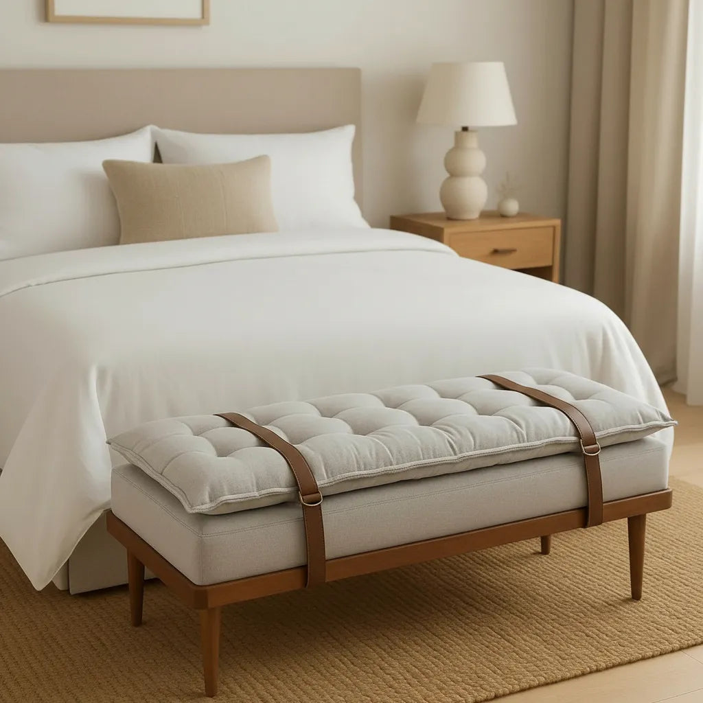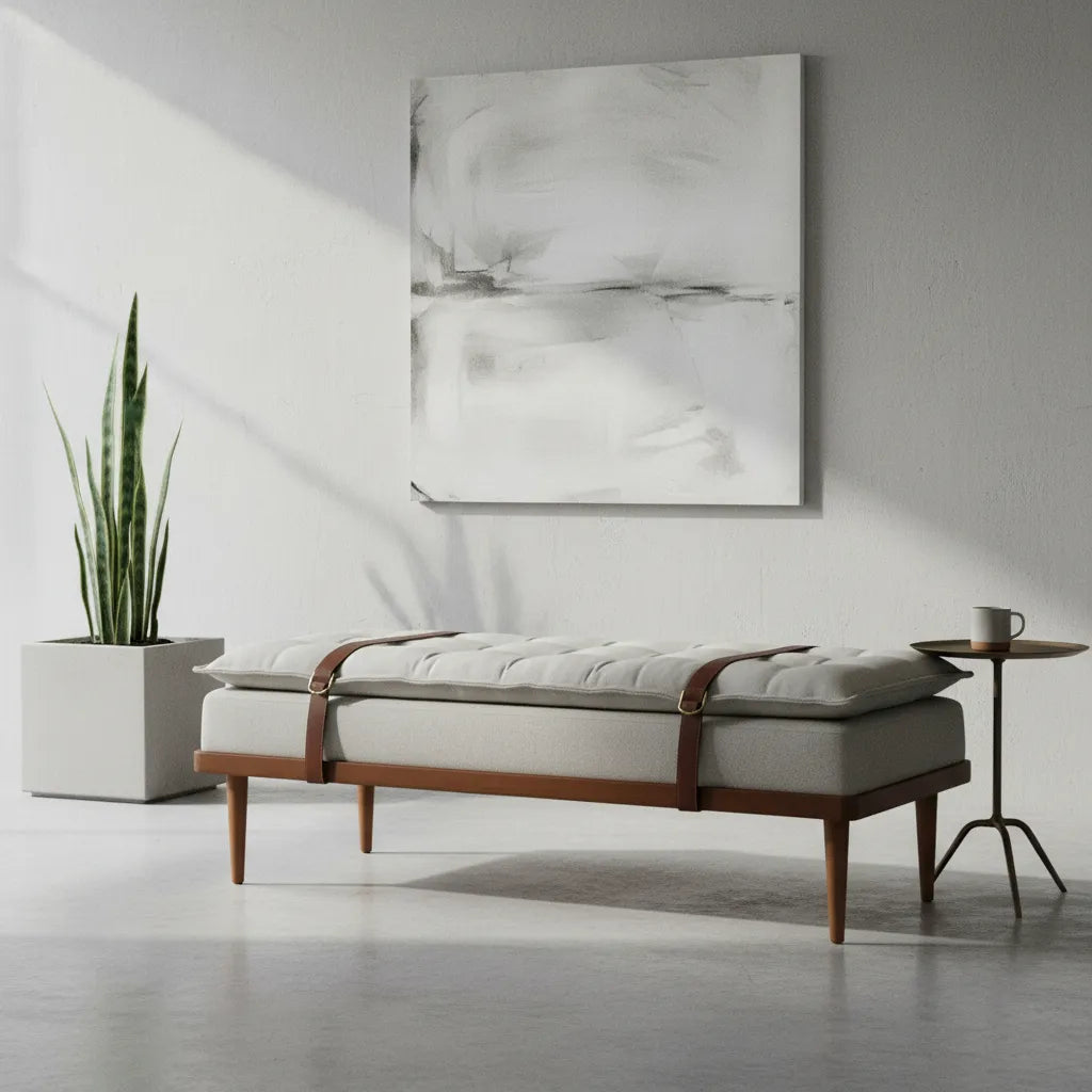 Con su diseño versátil y sus detalles de tapizado y correas decorativas, la Banqueta ART se integra con naturalidad en ambientes contemporáneos o clásicos, convirtiéndose en una pieza protagonista dentro de cualquier dormitorio o living.