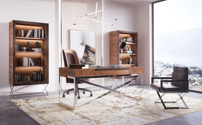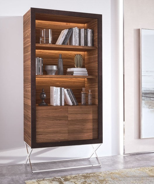 Le da uso a la madera de palisandro que le de alta calidad y le brinda un aspecto elegante y duradero, y el acabado lustrado con poliuretano ayuda a resaltar la belleza de la madera y proporciona protección adicional. La base de acero satinado complementa el diseño, aportando un toque moderno y sofisticado. La incorporación de iluminación LED en el interior de la biblioteca es una característica notable. Esta iluminación puede realzar la exhibición de tus libros u objetos decorativos, creando un ambiente acogedor y resaltando los detalles de los estantes y el diseño de la biblioteca. En general, la combinación de materiales y características de diseño de la biblioteca Bariti la convierte en una opción atractiva y única para cualquier espacio.