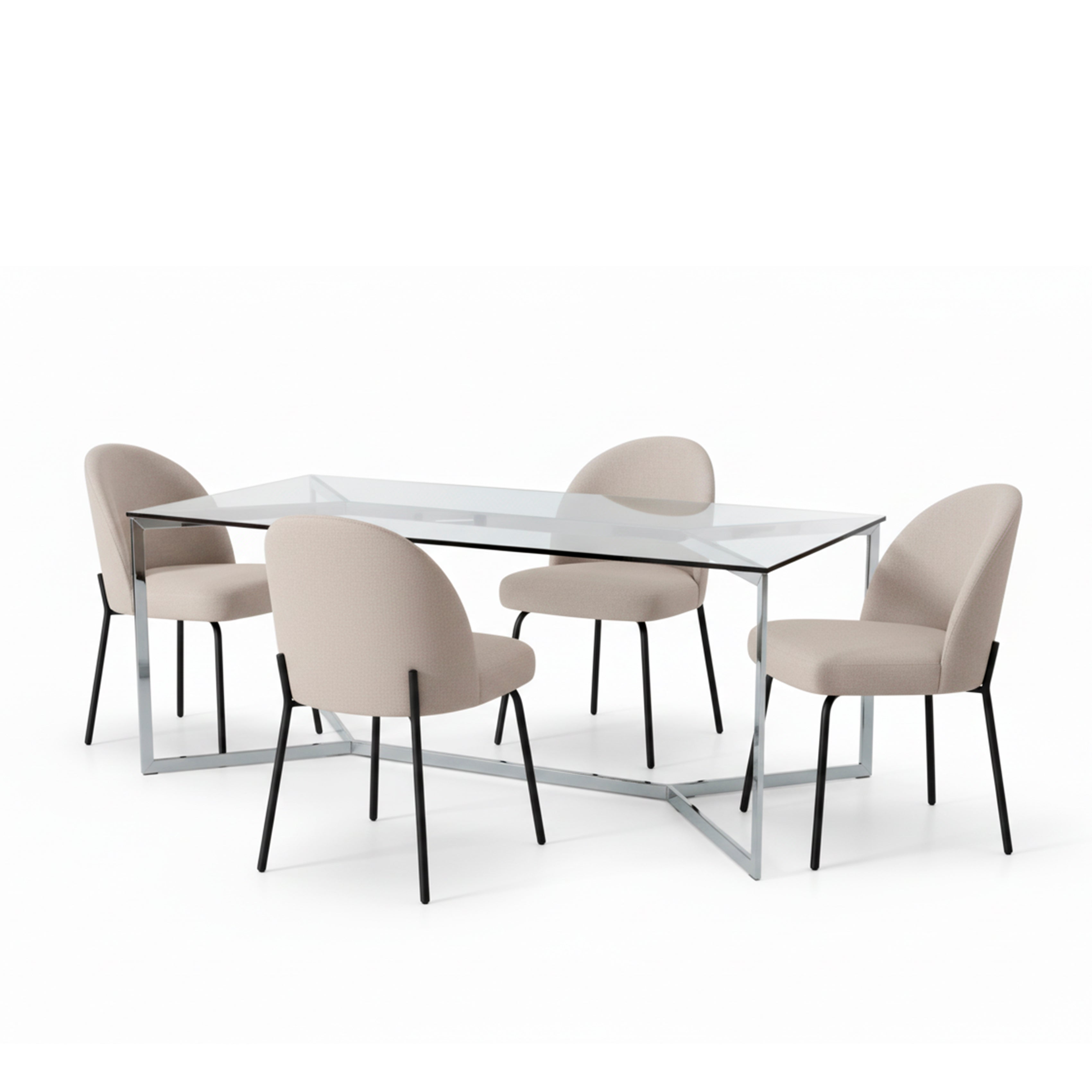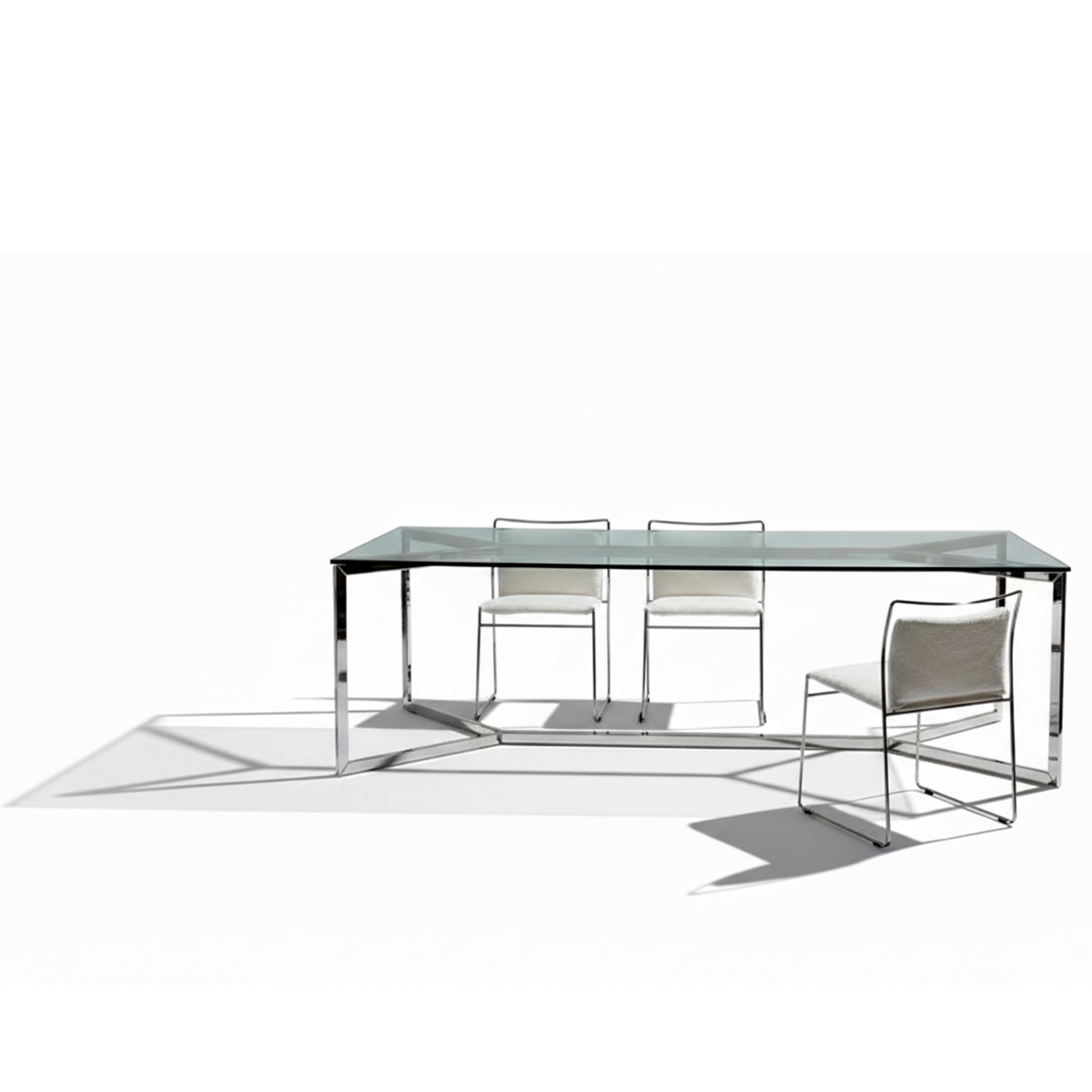 Cuenta con una moderna tapa de vidrio, lo que le permite adaptarse a diferentes estilos y preferencias. La mesa Bellano se adapta a tu gusto. Su diseño limpio y atemporal hace que sea un complemento perfecto para cualquier espacio, ya sea como mesa de comedor, escritorio o área de reuniones. Añade un toque de elegancia y funcionalidad a tu hogar u oficina con la versátil mesa Bellano.