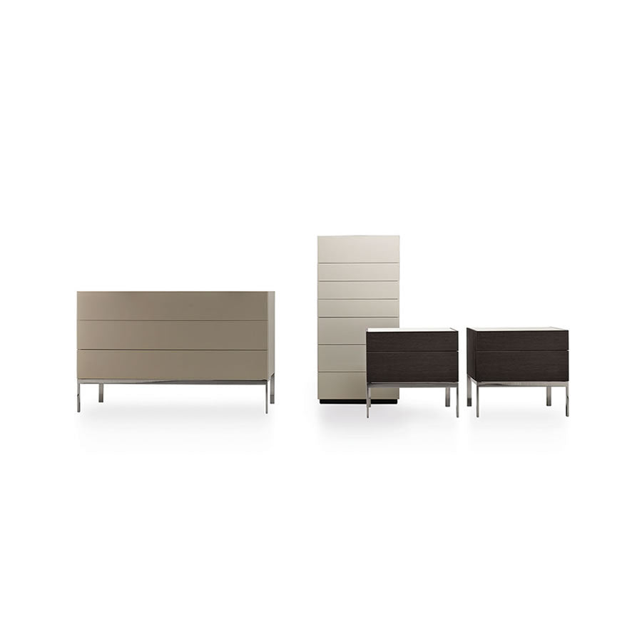 La cómoda Berlin está fabricada con madera laqueada al poliuretano mate, lo que le da un aspecto moderno y elegante. Los cajones tienen correderas de cierre suave, lo que garantiza una apertura y cierre sin esfuerzo y sin ruido. Además, el color de la cómoda puede ser personalizado a elección.
