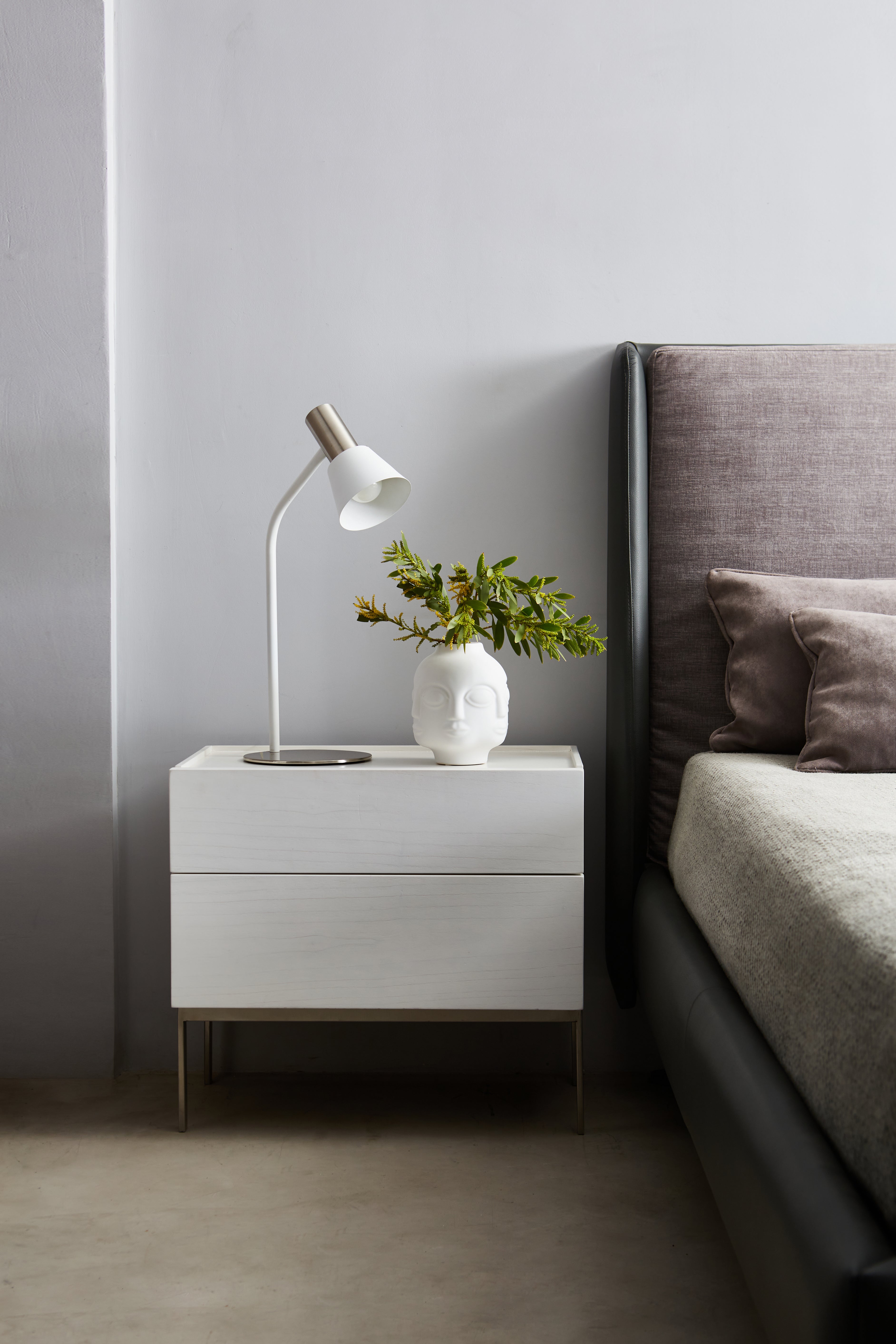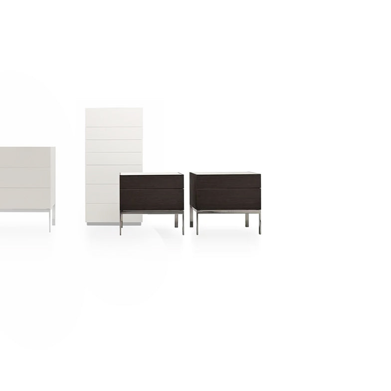 La mesa de noche Berlín posee un diseño de aspecto moderno y elegante. Puede ser fabricada en madera laqueada al poliuretano mate o madera enchapada lustrada. Los cajones tienen correderas de cierre suave, lo que garantiza una apertura y cierre sin esfuerzo y sin ruido.