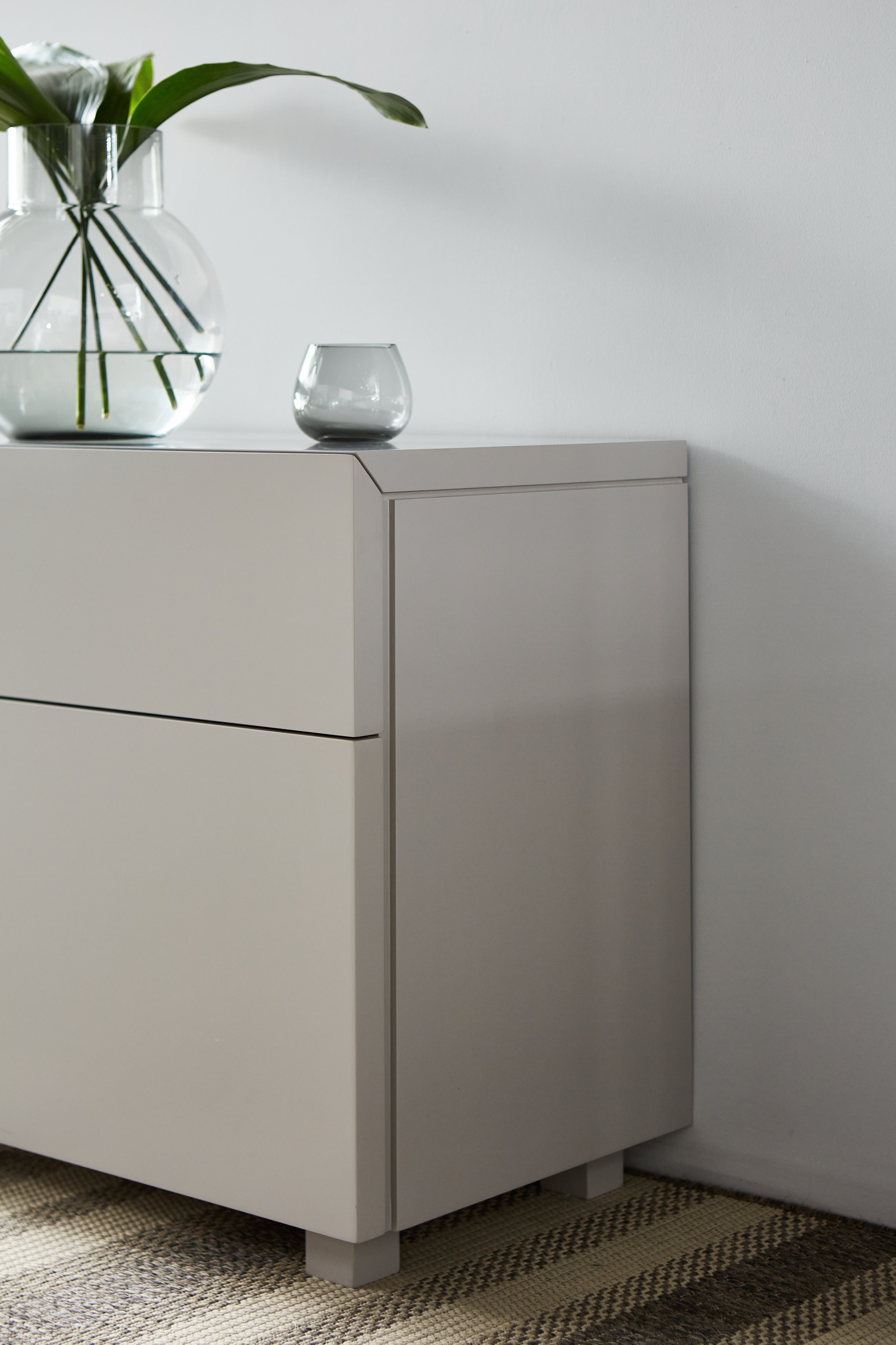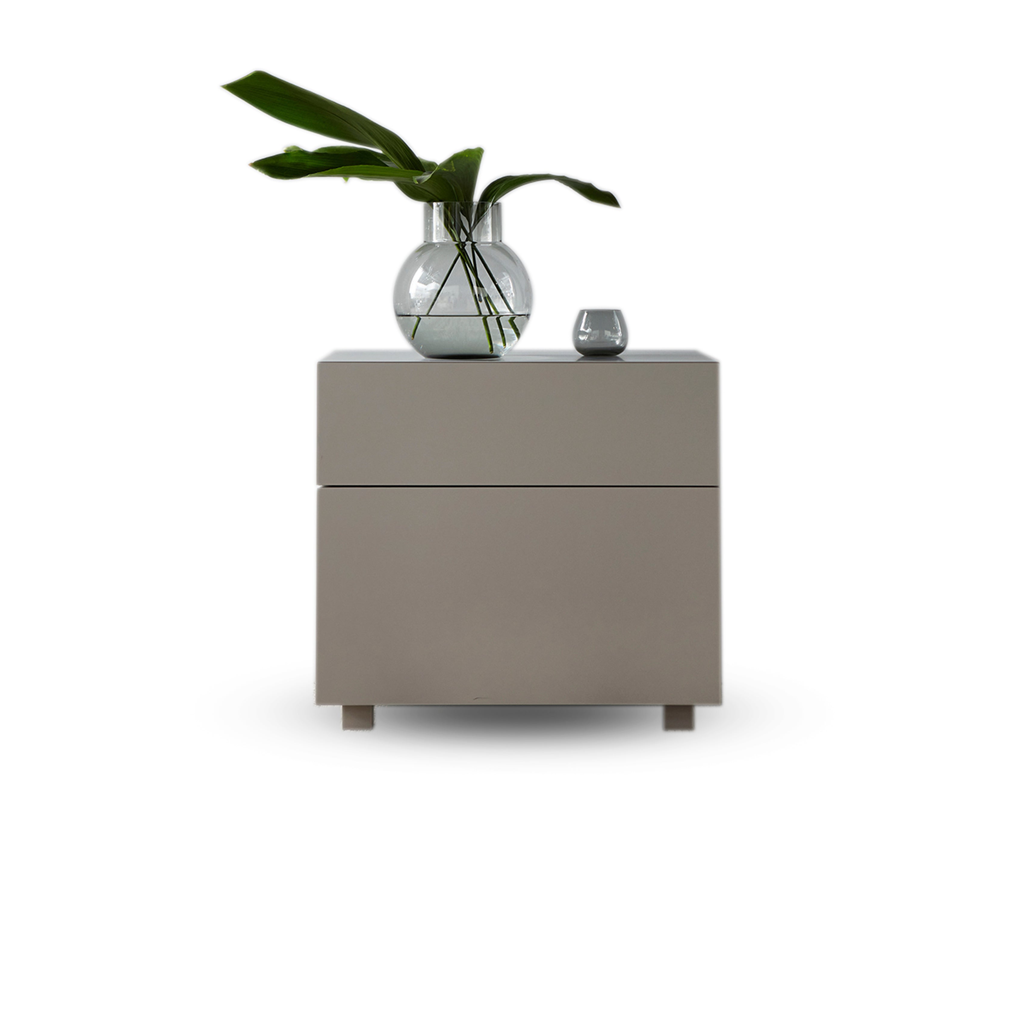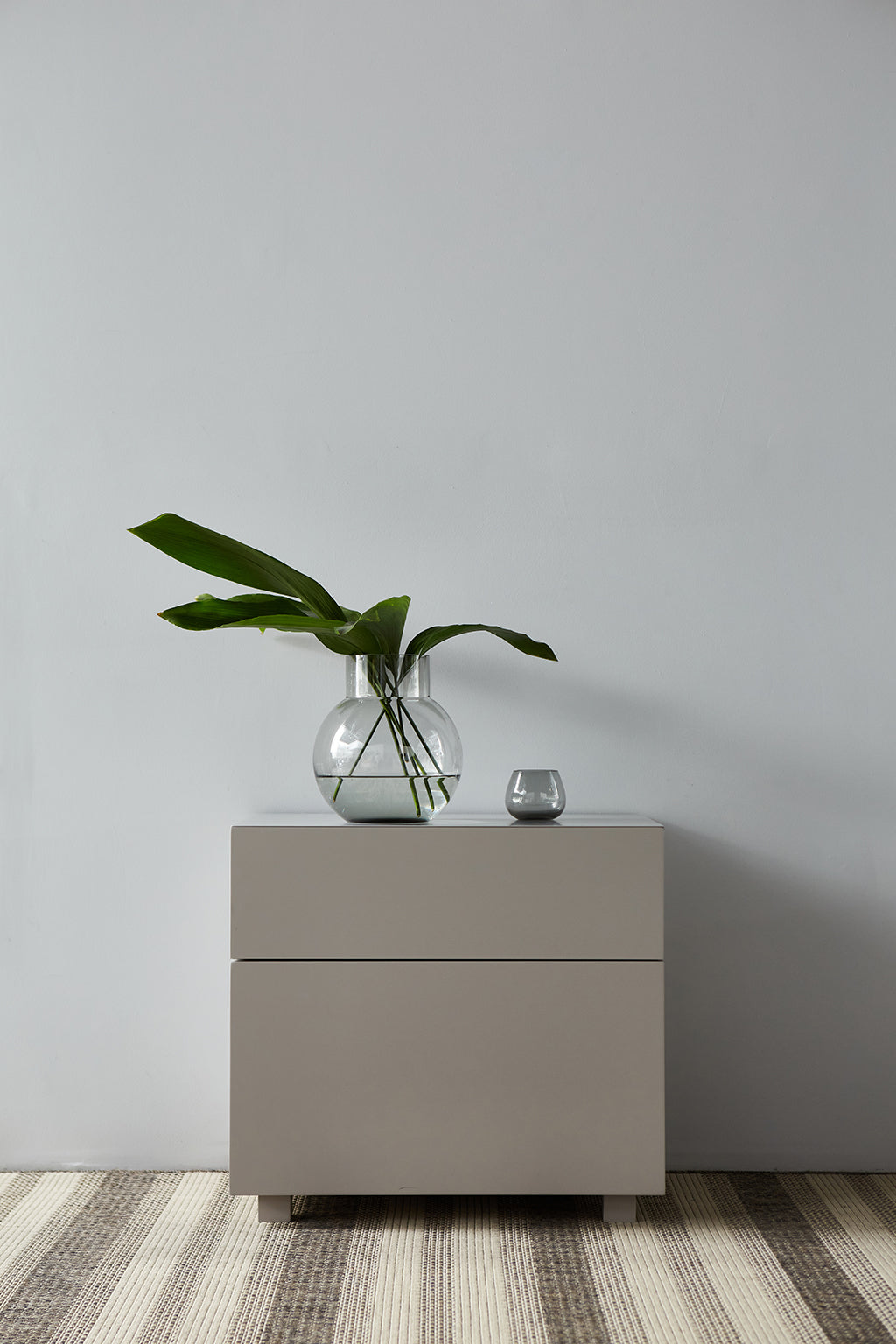Puede ser lacada en colores a elección o estar disponible en maderas como eucalipto, roble gris, roble grafito, olmo claro u olmo oscuro.