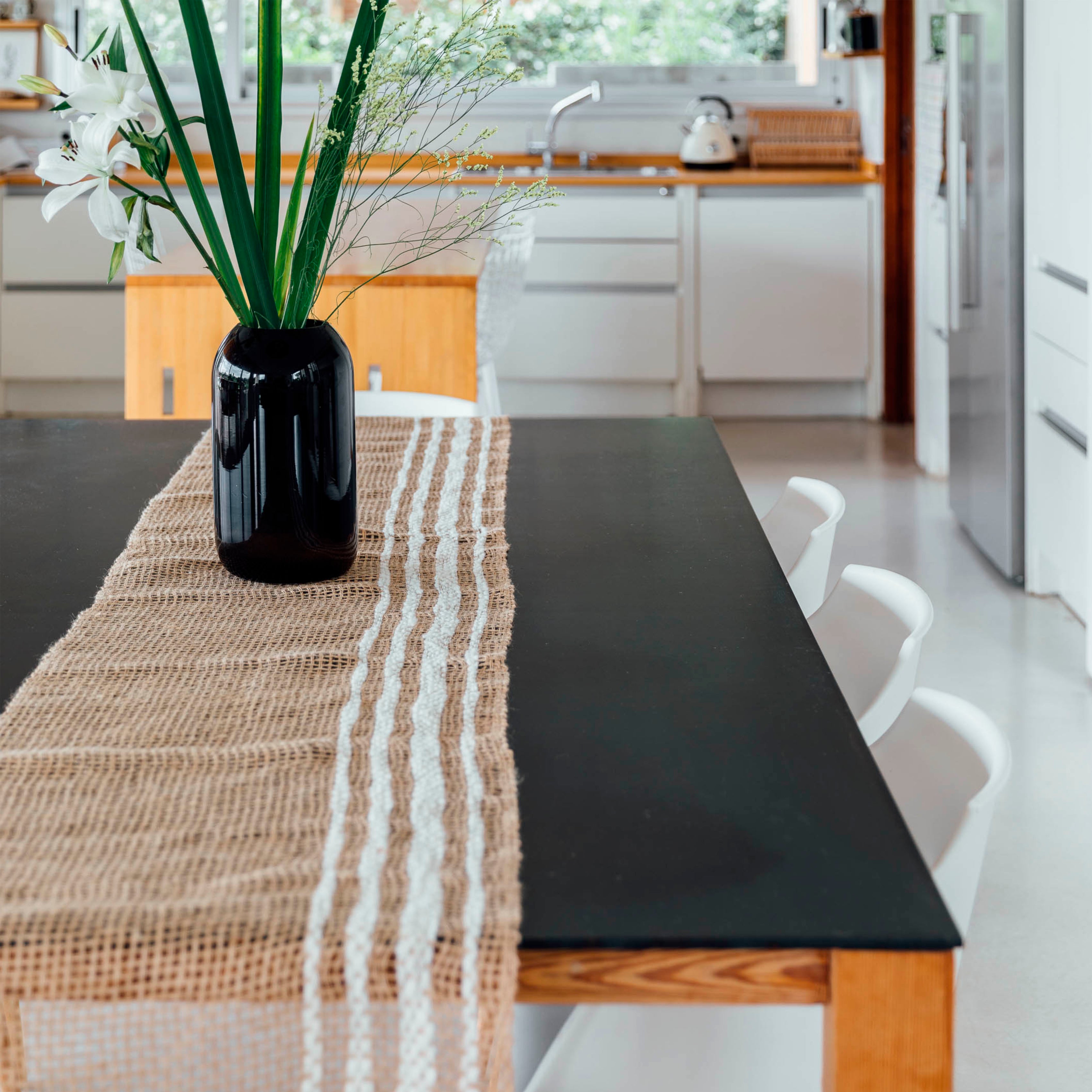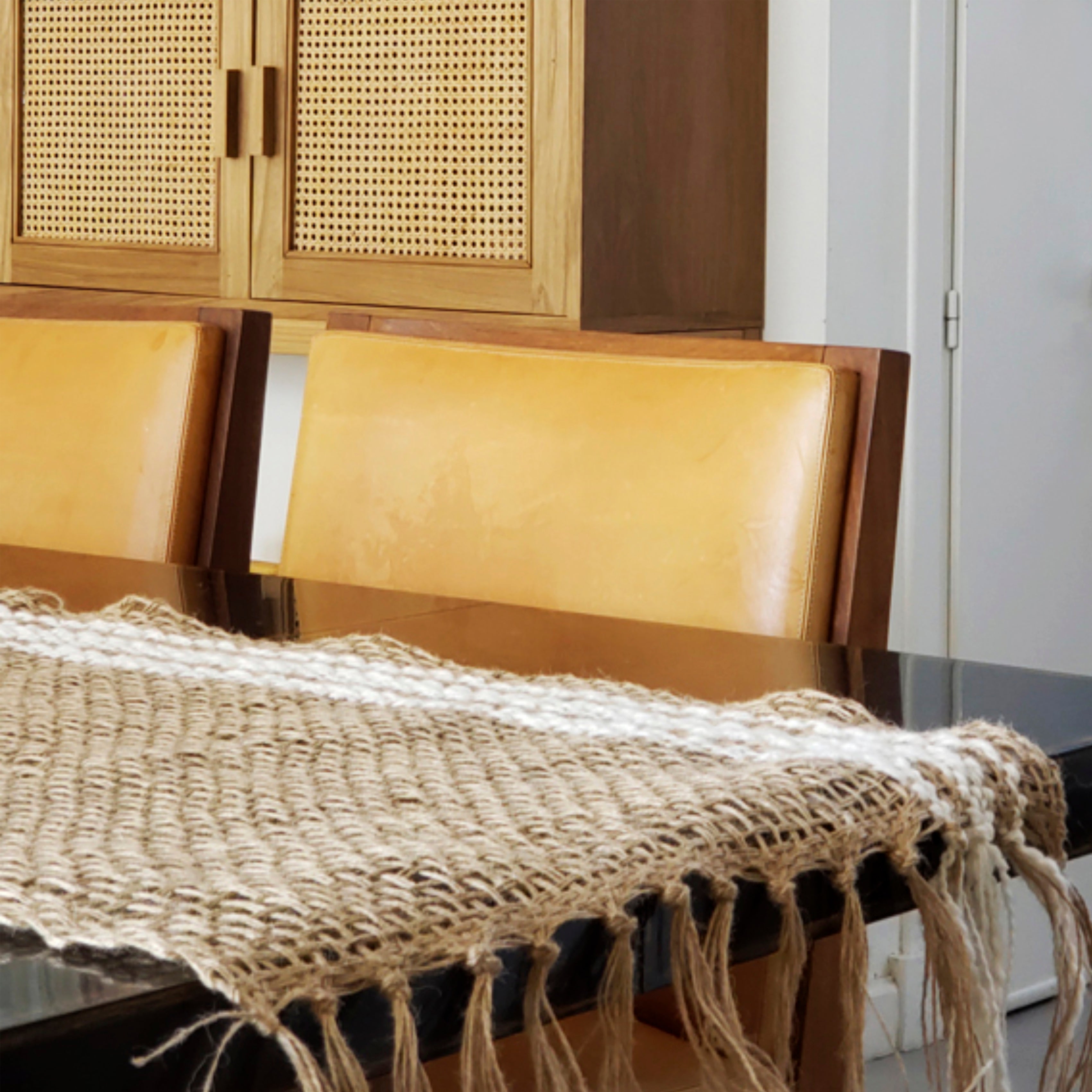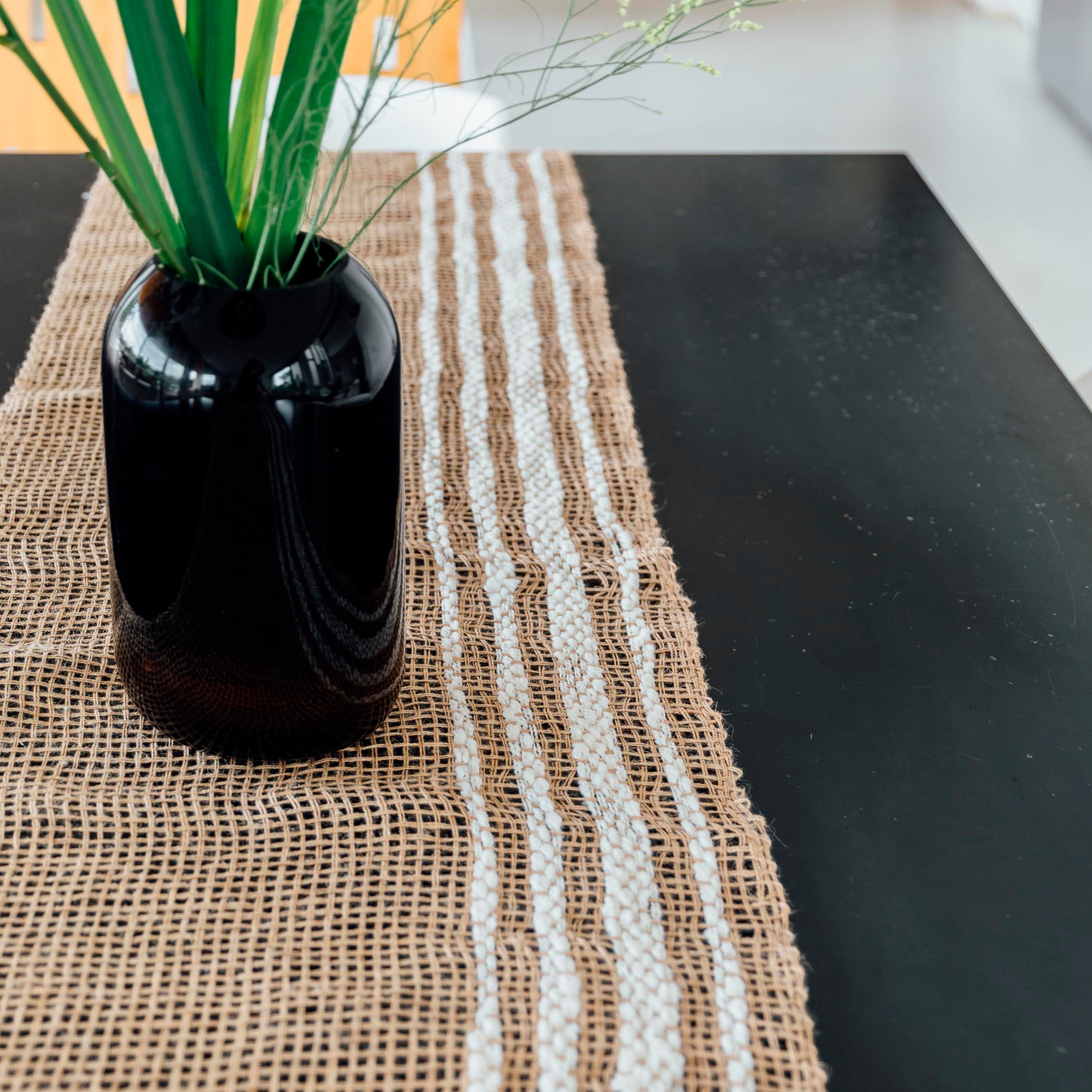 Camino tejido en telar con yute, una fibra natural resistente y ecológica que aporta un encanto rústico y sofisticado a cualquier espacio. Su textura única y su tono neutro lo hacen ideal para mesas de comedor, consolas o muebles de madera, combinando perfectamente con colores tierra, blancos, negros y tonos naturales. Gracias a su versatilidad y durabilidad, este camino es una excelente opción para quienes buscan un estilo orgánico y atemporal en su decoración.