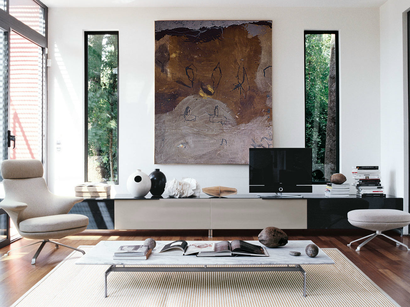La colección Coure puede funcionar como consola multimedia o mueble multiusos.