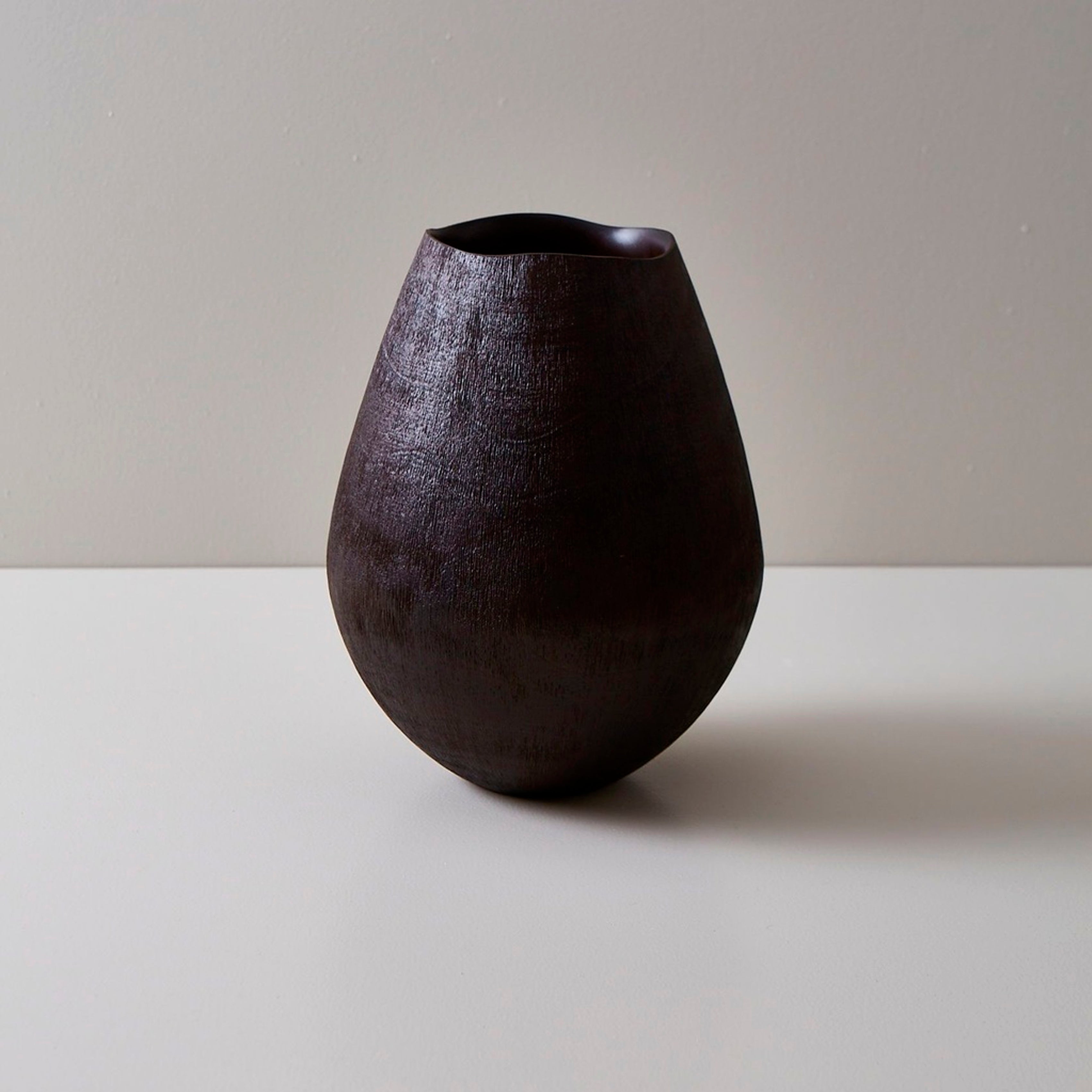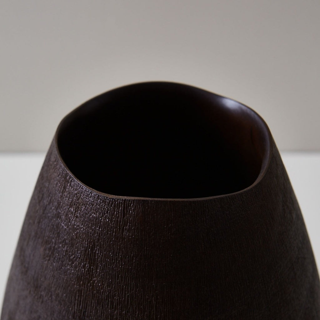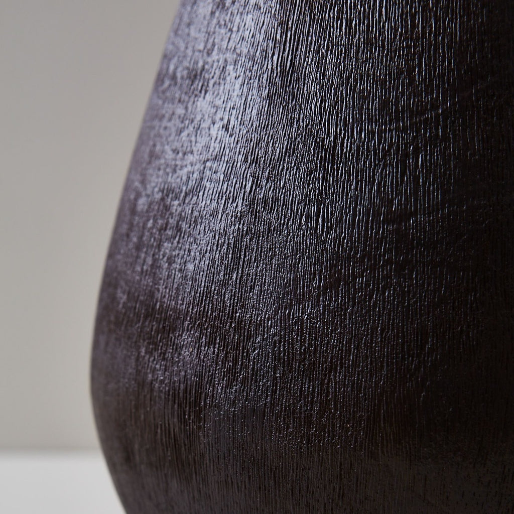 Cuenco decorativo tallado en madera con acabado negro mate y mango texturado, que aporta carácter y estilo artesanal a la pieza. Su diseño versátil lo hace ideal para uso decorativo sobre mesas, aparadores o como centro de mesa.