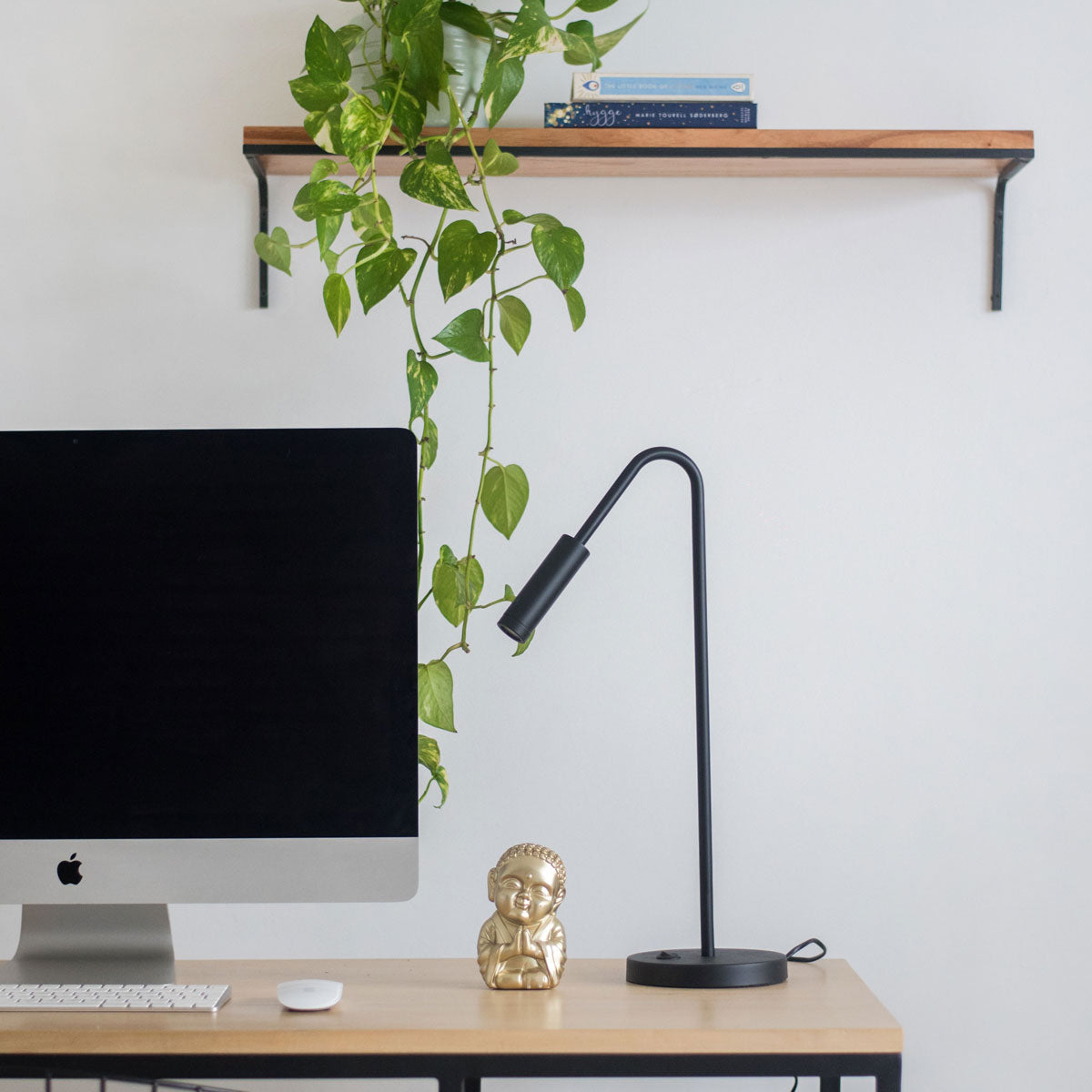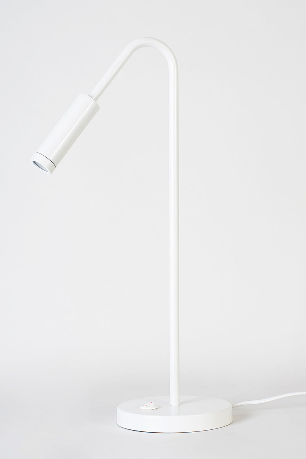 Cabezal fijo en pedestal curvo. Base torneada a mano con interruptor ON/OFF y cable inyectado.