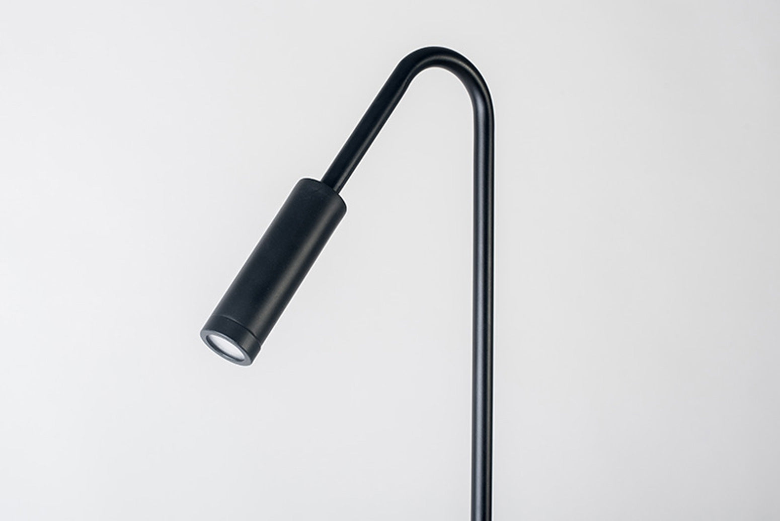 Cabezal fijo en pedestal curvo. Base cortada en láser con pulsador de piso ON/OFF y cable inyectado.
