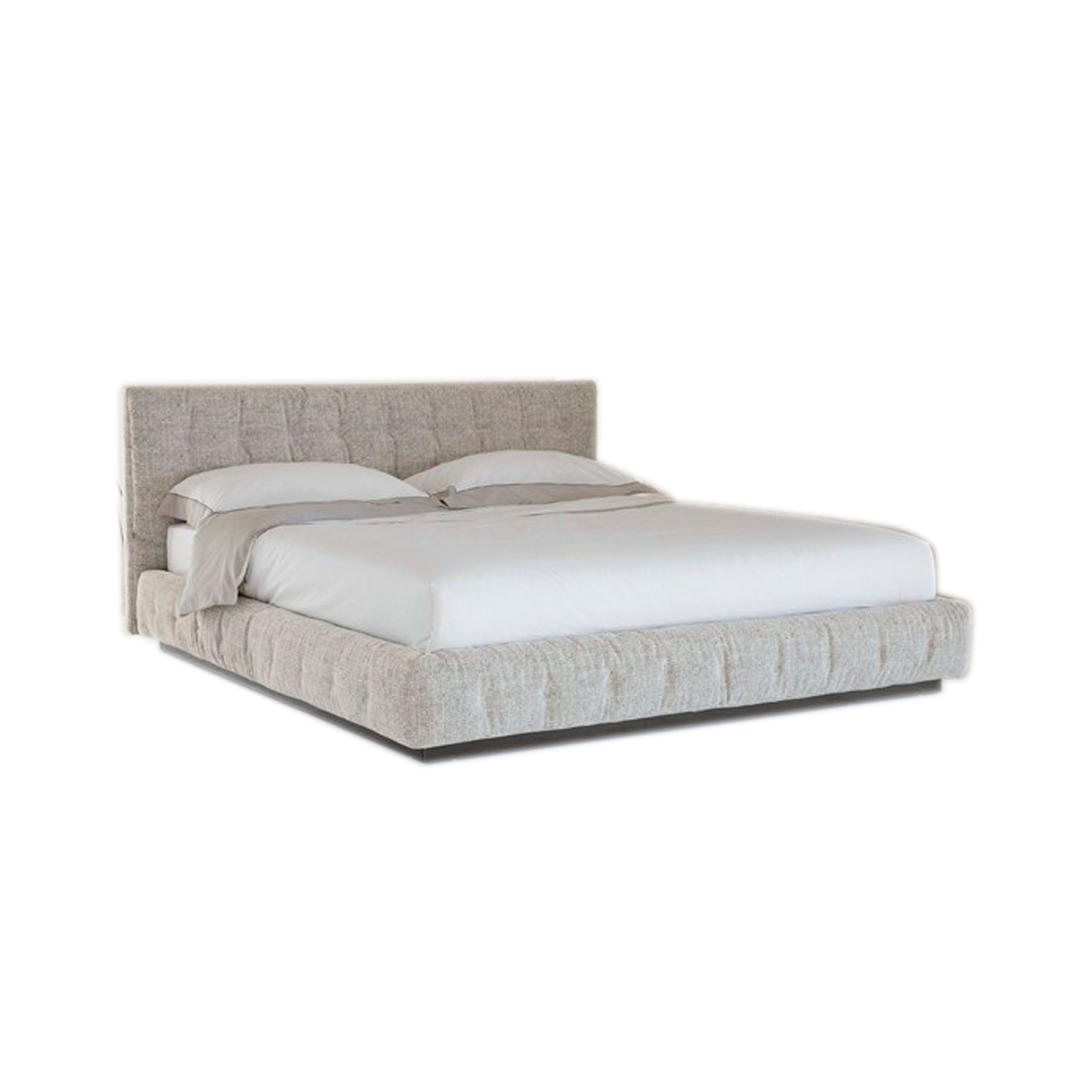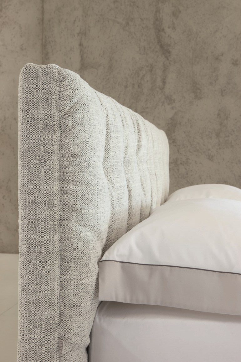La Cama Discansore tiene una estructura de madera tapizada con base de placa super soft y está disponible en pana de microfibra, lino o cuero ecológico en un color a elección.