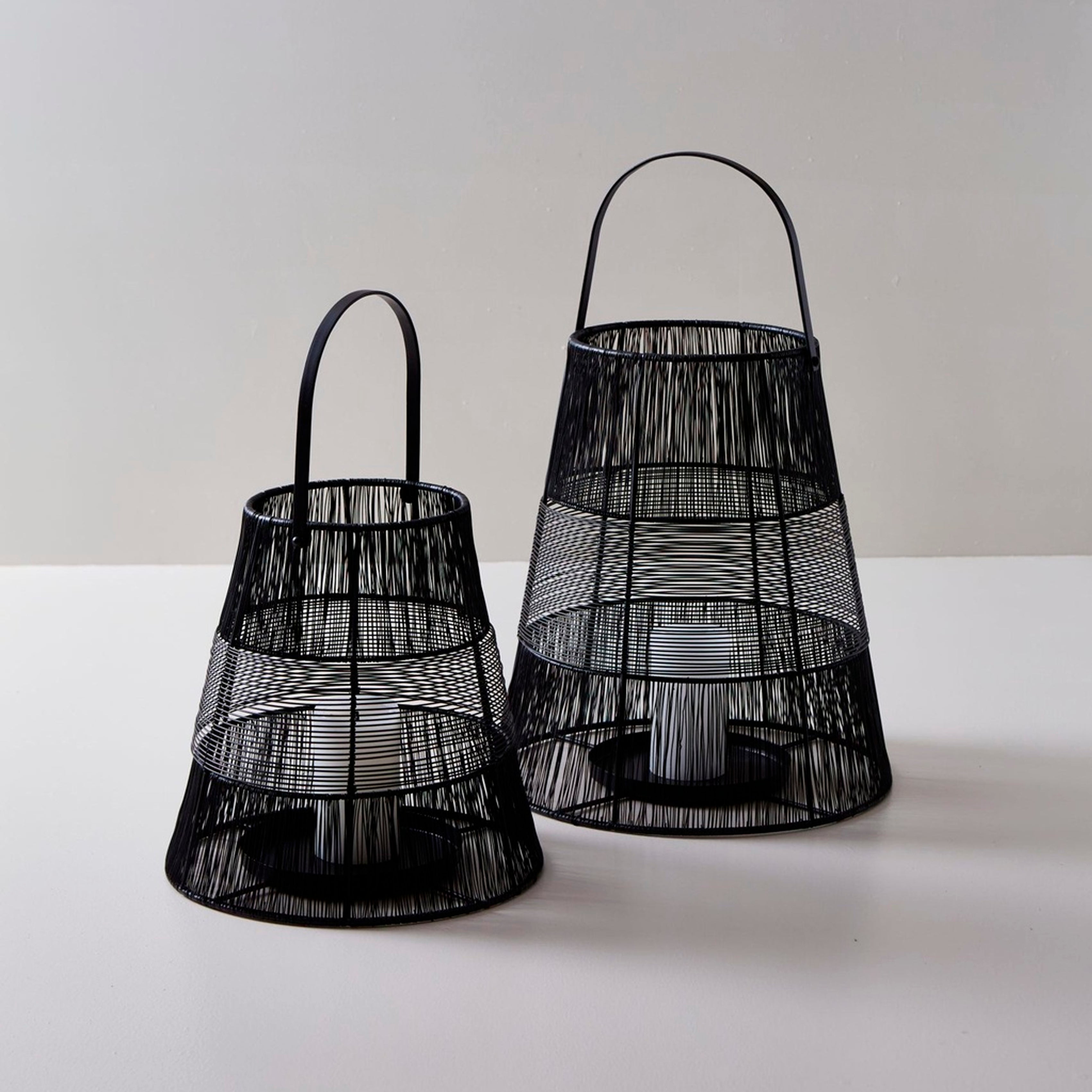 Aporta carácter y estilo industrial a tu decoración con este set de fanales de metal en color negro. Su diseño sobrio y robusto los hace ideales para crear ambientes cálidos con velas o luces decorativas.