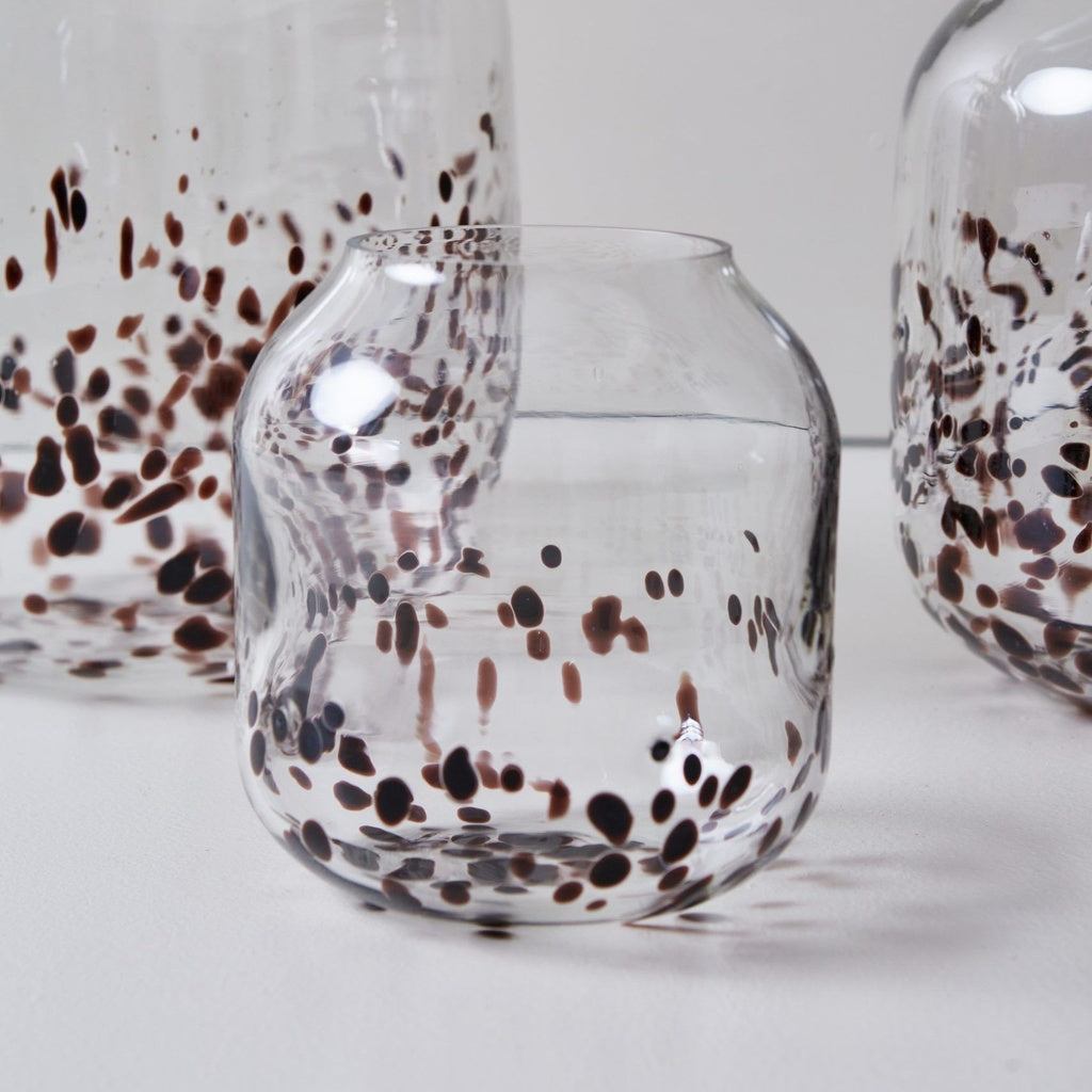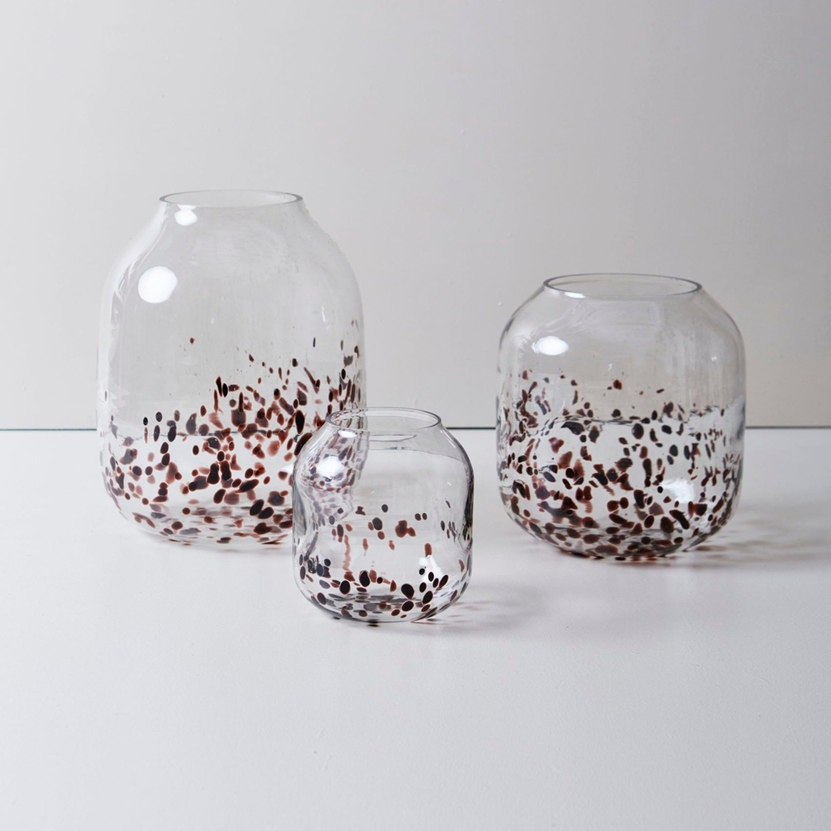 Este exclusivo set de jarrones de vidrio transparente destaca por su delicado trabajo artesanal y detalles pintados a mano. Cada pieza combina la pureza del vidrio con un toque artístico sutil, ideal para quienes buscan decoración con identidad y estilo.
