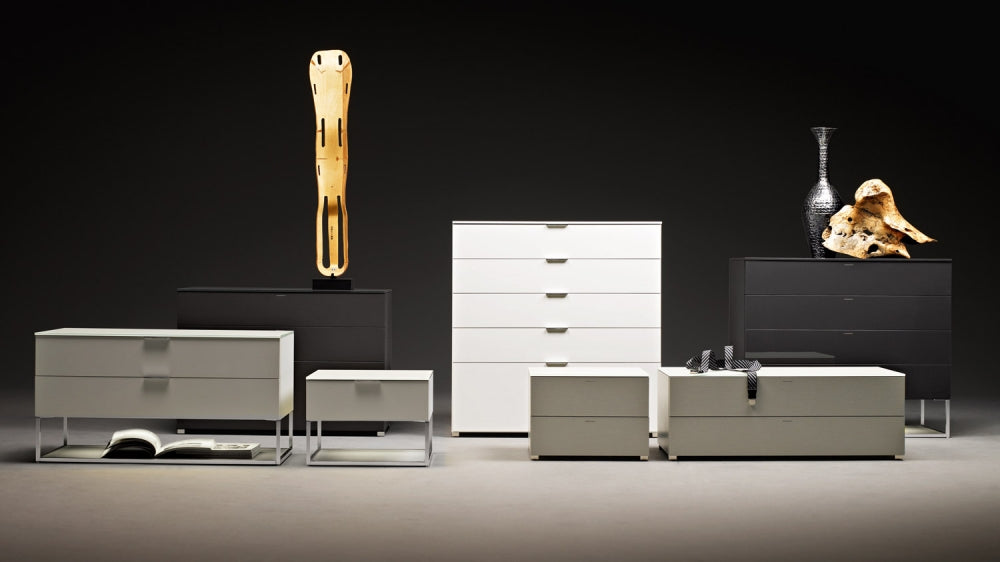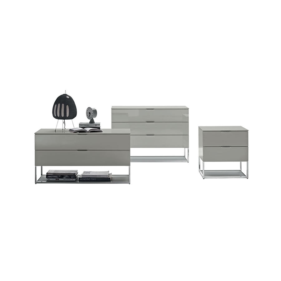 La cómoda Madrid está fabricada con madera laqueada al poliuretano mate y cuenta con tres cajones con correderas de cierre suave. El color de los cajones y la base en hierro pintado epoxi puede ser personalizado según las preferencias del cliente.