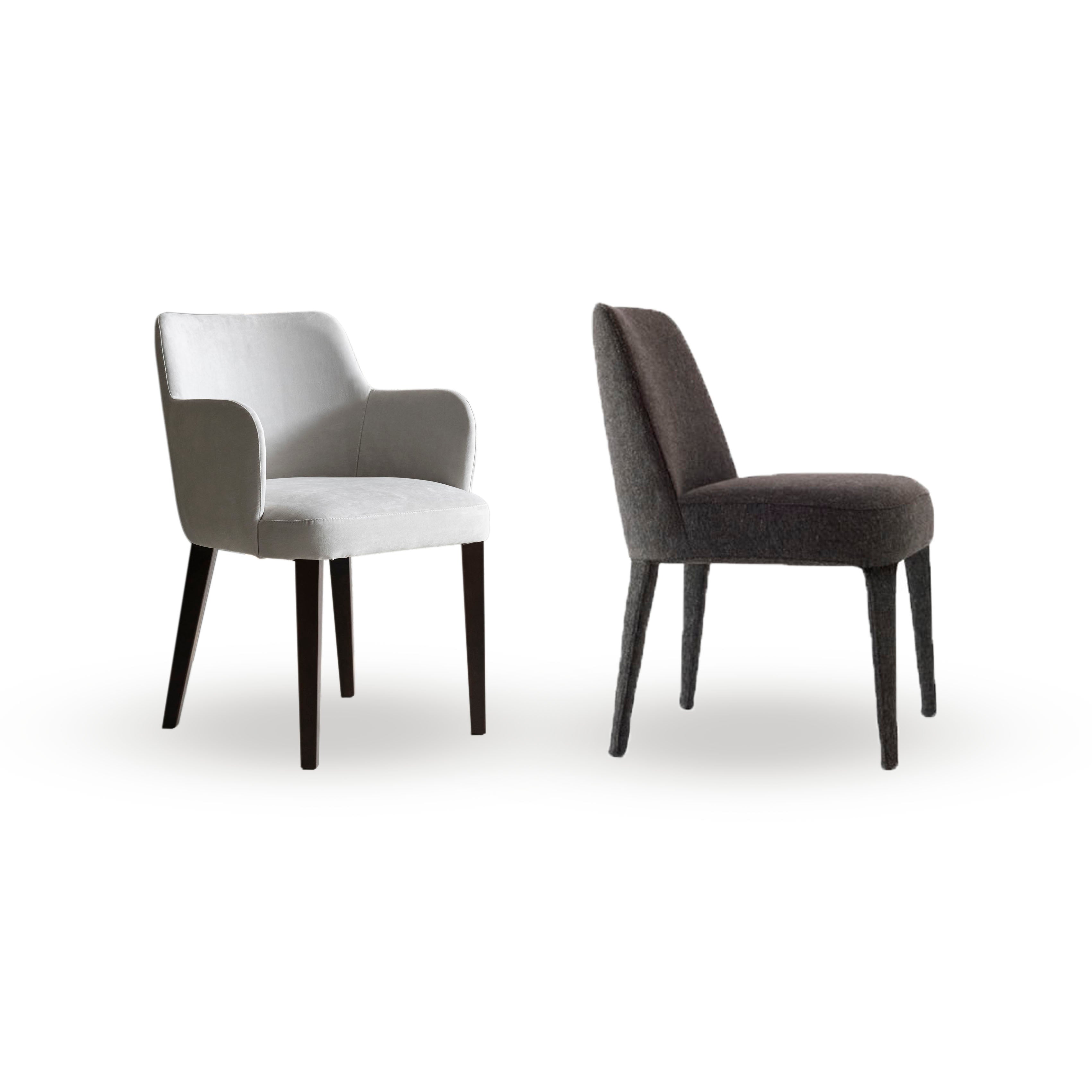 La estructura de la Silla puede ser con patas lustradas o tapizadas, ambas opciones aportan un estilo sofisticado y único. Está fabricada con madera de guindo maciza lustrada, lo que garantiza su durabilidad y belleza a lo largo del tiempo.