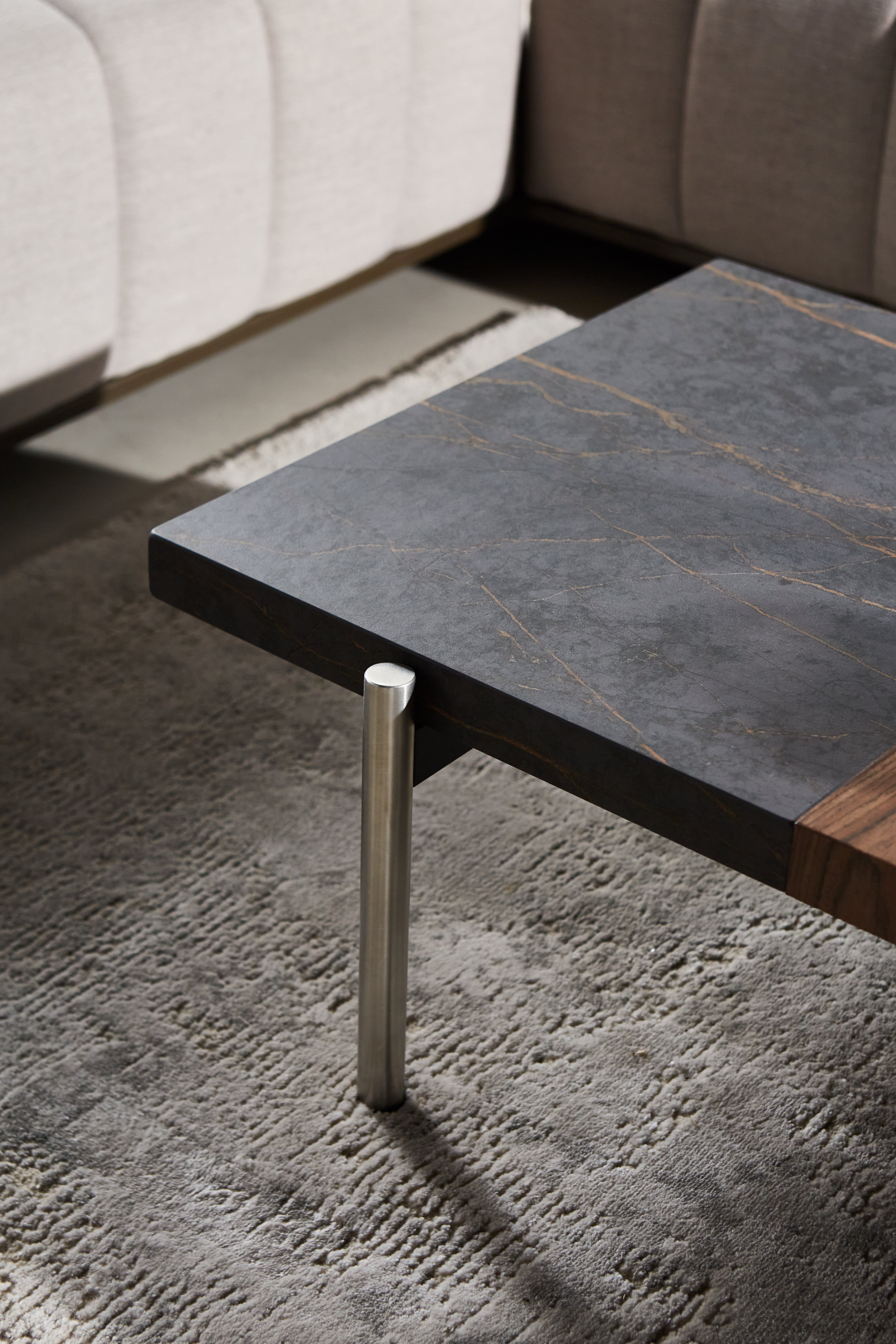 La tapa puede ser de madera o una combinación de madera y Dekton, a elección, con acabado de poliéster mate.