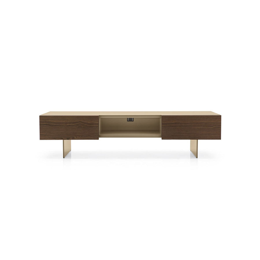 Fabricado en madera lacada con una base de metal revestido, disponible en varios acabados y colores para el marco y las puertas.