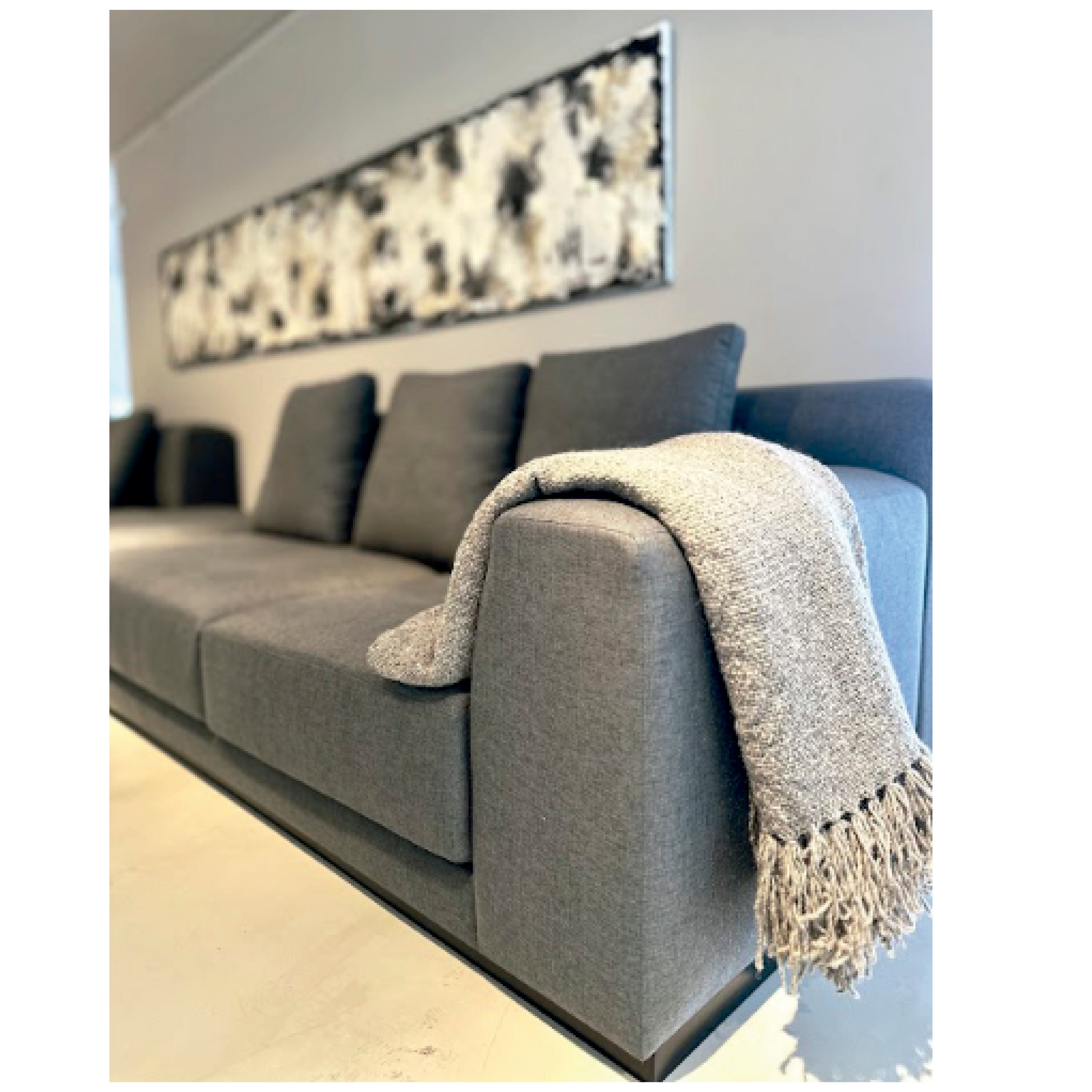 Construcción: estructura en maderas estacionadas, cinchas y resortes, placa de supersoft de densidad variable a confort personal, almohadones en vellón siliconado envueltos en guata con funda y cierres. Zócalo reundido en madera luatrada.