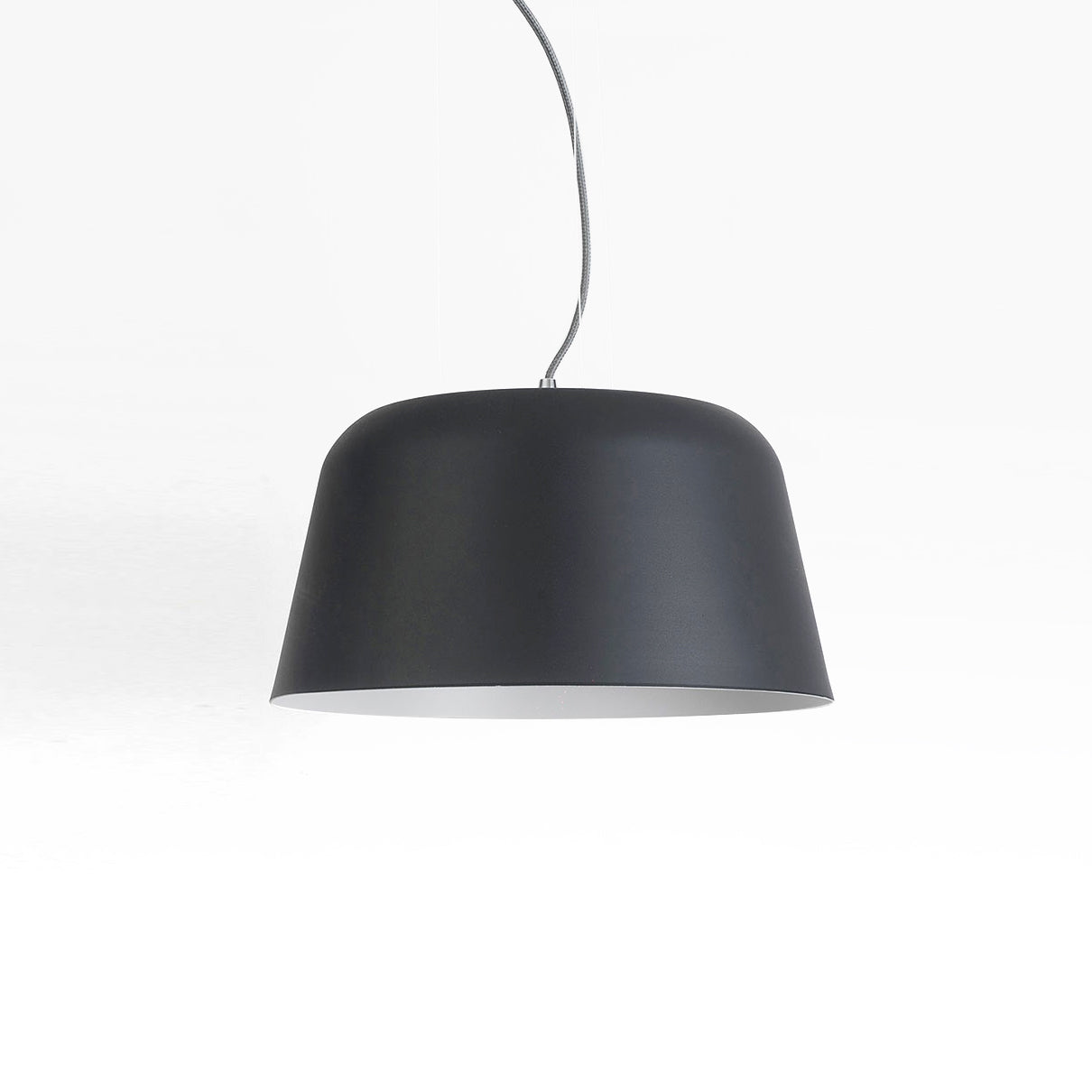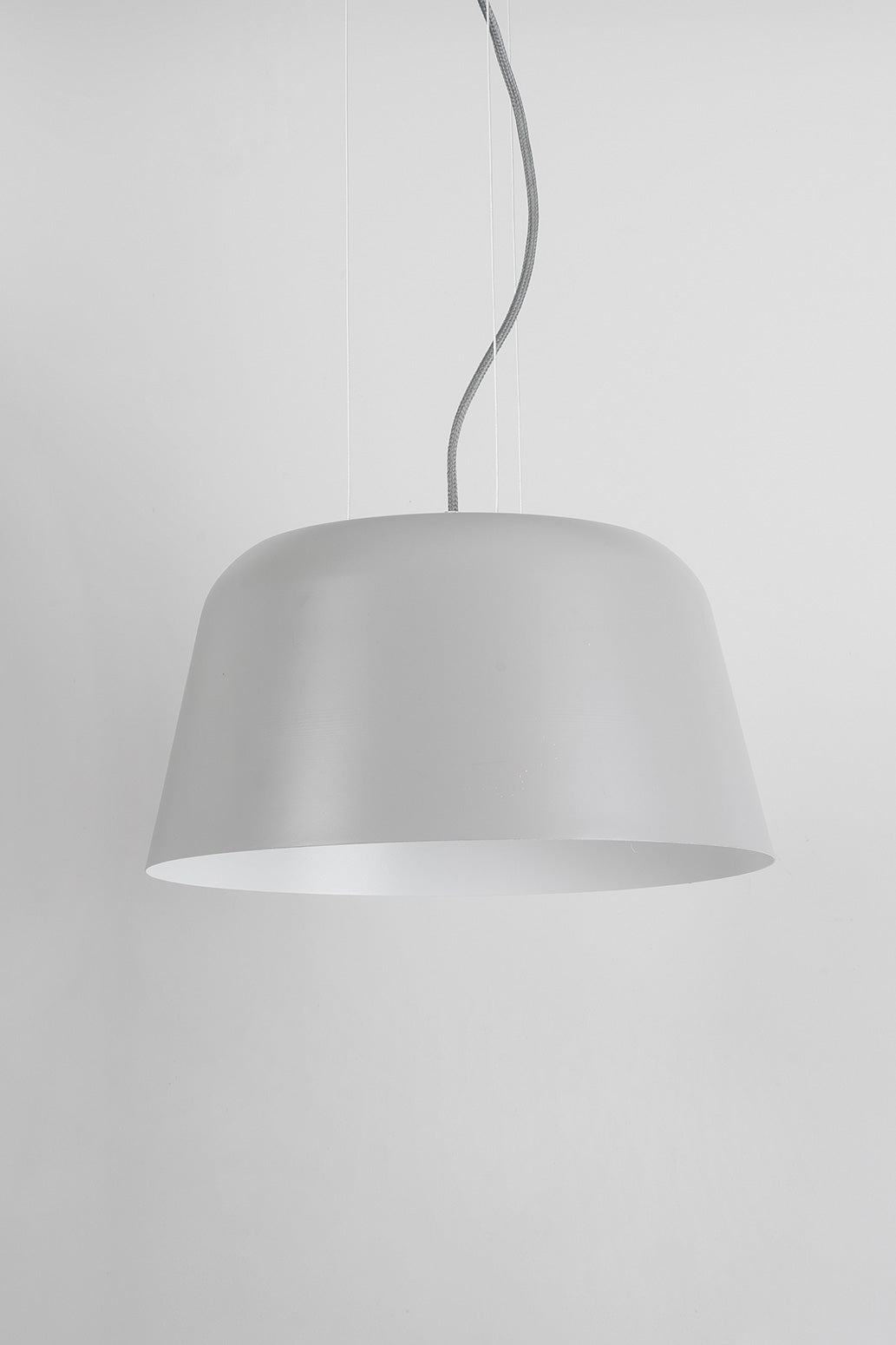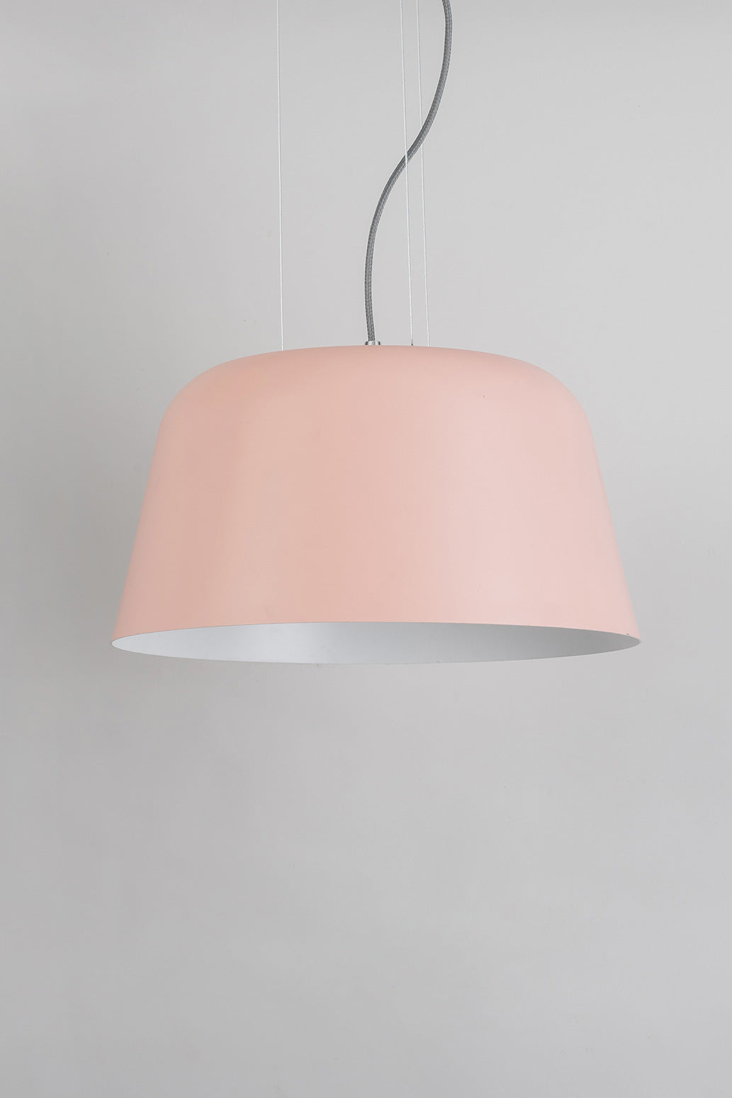 Se destaca en los espacios de cocina, comedor o living por su gran copa y sus detalles combinados. Su terminación es un gran diferencial, con un plato y pieza de tensor y cable platil y un plato torneado a mano para ocultar el portalámpara. Es un diseño con armonía.