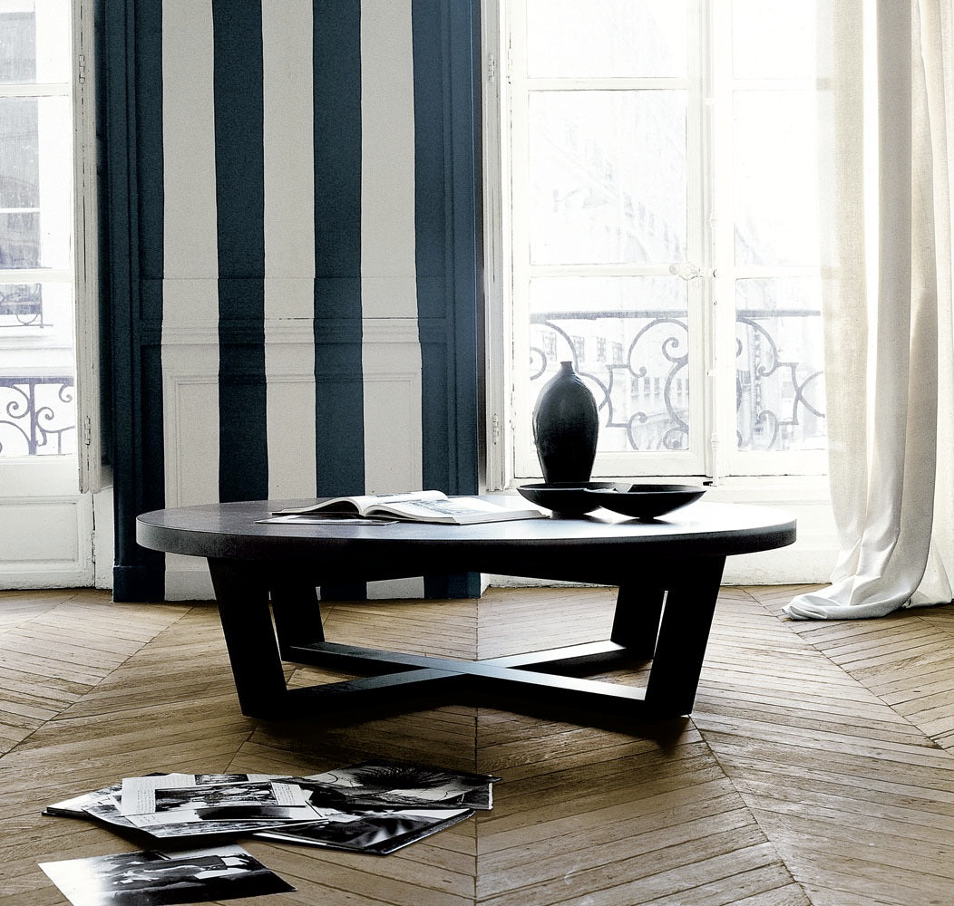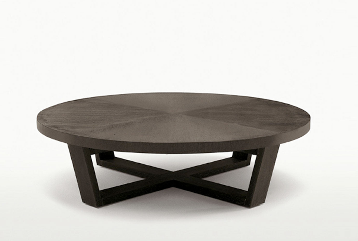 La mesa de centro Robbia está hecha de madera de roble americano, con una tapa enchapada y una base maciza. La madera ha sido lustrada al poliuretano mate para crear un aspecto elegante y resistente.