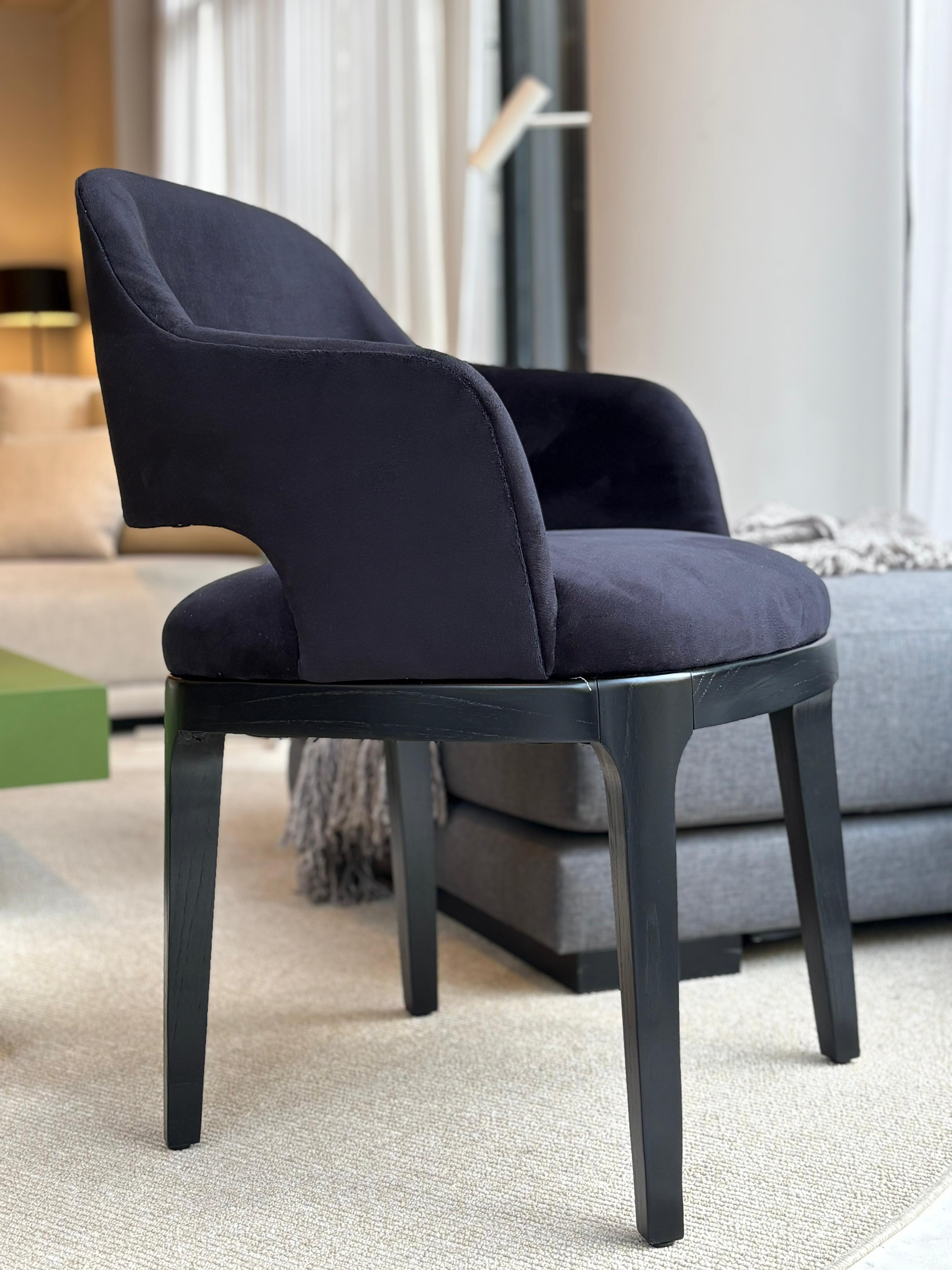 La Silla Verona es la evolución contemporánea y ligera del histórico modelo Sophie. Se mantiene la estructura de madera maciza, mientras que el asiento se distingue por el respaldo perfilado, tapizado en tejido o piel. Acogedora y elegante, Verona representa el nuevo complemento perfecto para todas las mesas de la colección Day Complements.