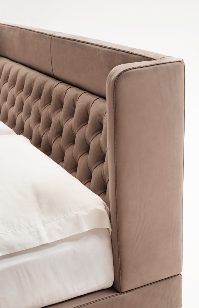 En cuanto a los materiales de tapizado, son a elección del cliente, permitiendo seleccionar tejidos y tonos para personalizarla según su estilo y decoración.