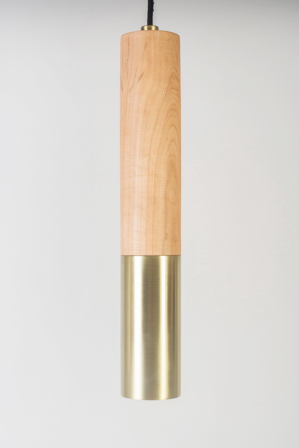 Cuerpo de madera maciza de Lenga (madera autóctona del sur argentino) con base de hierro soldado a mano. Cable textil y base de una luz torneada por balancín con sistema de ajuste fácil.