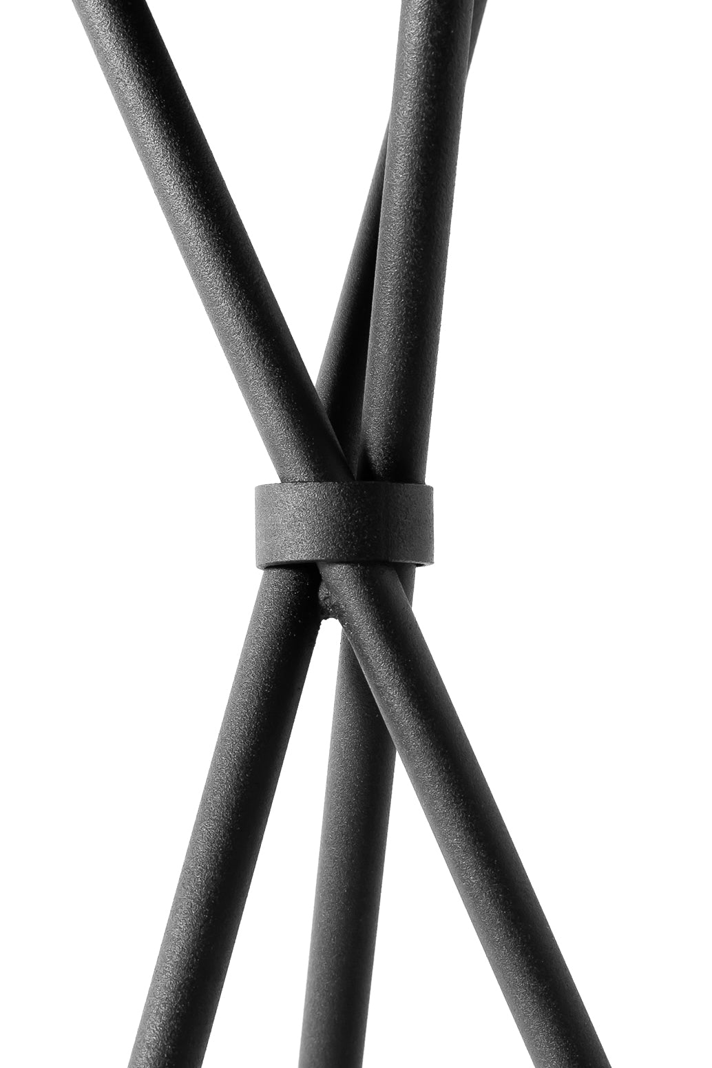 Pedestal compuesto de tres patas unidas por una pieza circular doblada a mano. Portalámparas en capuchón cónico con doble arandela de seguridad. Cable inyectado y pulsador de piso ON/OFF.