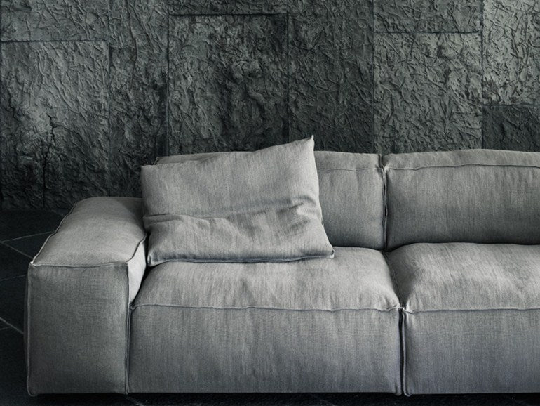 El relleno del sofá está compuesto por una placa de supersoft de densidad variable, lo que significa que se adapta al confort personal. Los almohadones están rellenos de vellón siliconado, que ofrece una sensación suave y cómoda, Además, las fundas de los almohadones cuentan con cierres, lo que facilita su lavado o cambio.