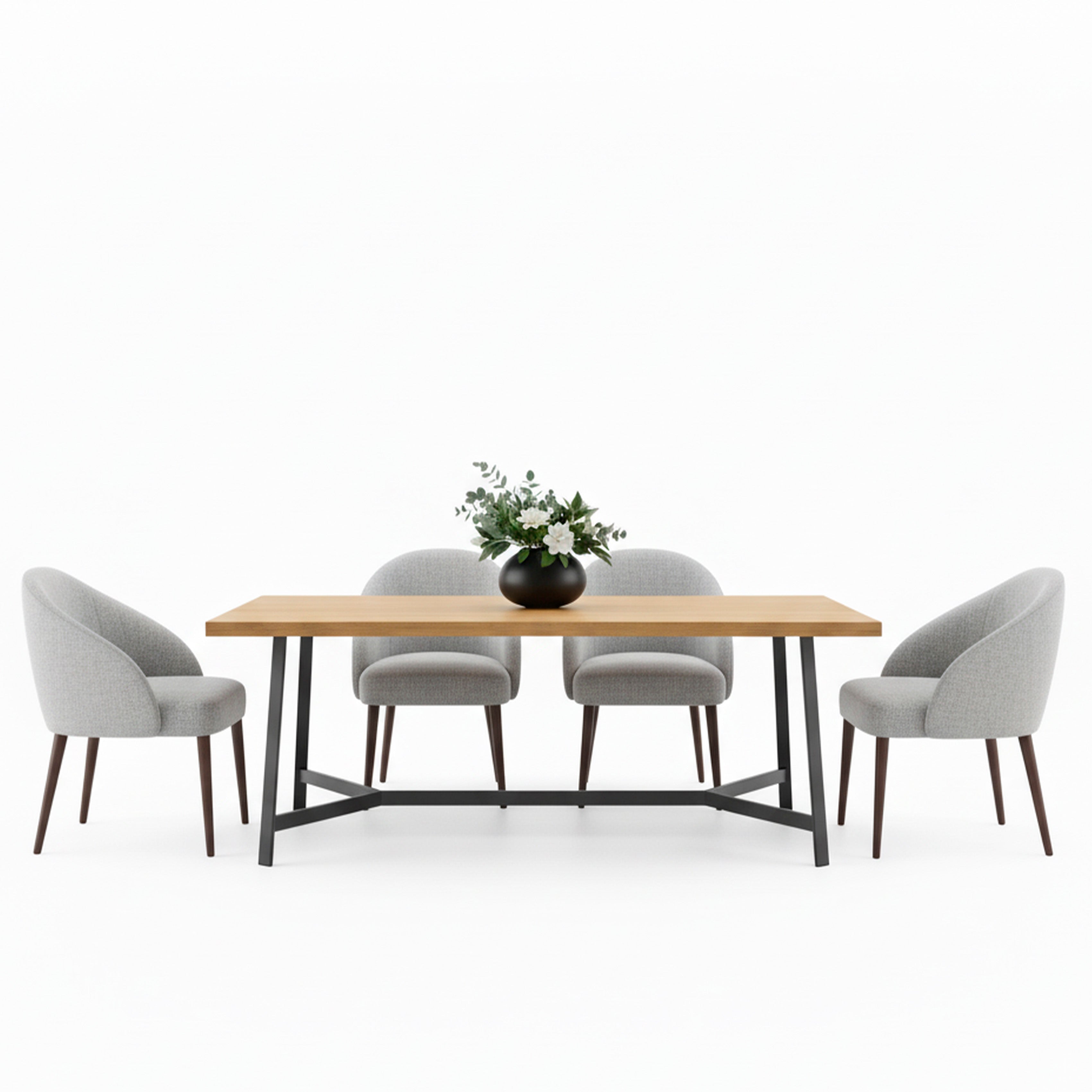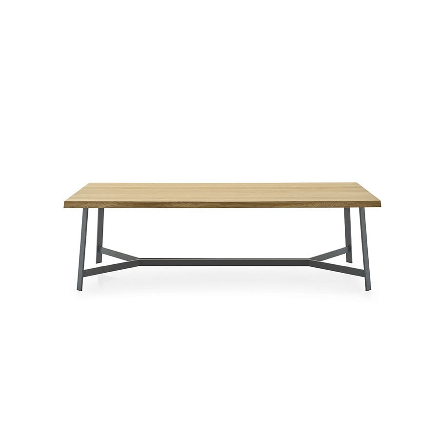 La mesa de comedor Zaccari S cuenta con una tapa de madera lustrada al poliuretano mate, lo que le proporciona un acabado elegante y duradero. La base está hecha de hierro con pintura epoxi, lo que le otorga una gran estabilidad y resistencia.